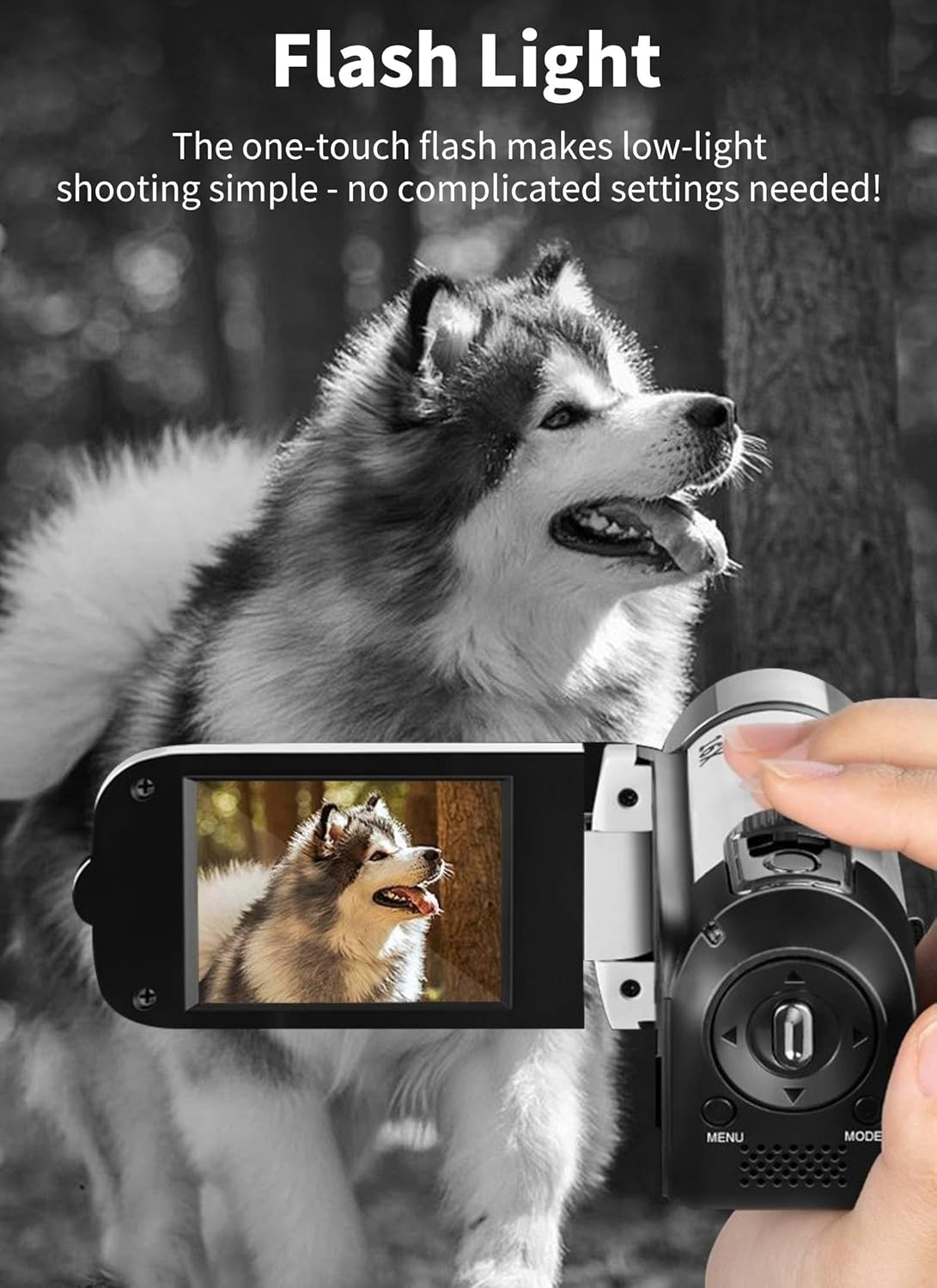 【With Fill Light】: The front of this digital camera is equipped with fill light, which is convenient for photography, and can be used in various environments, day or night.