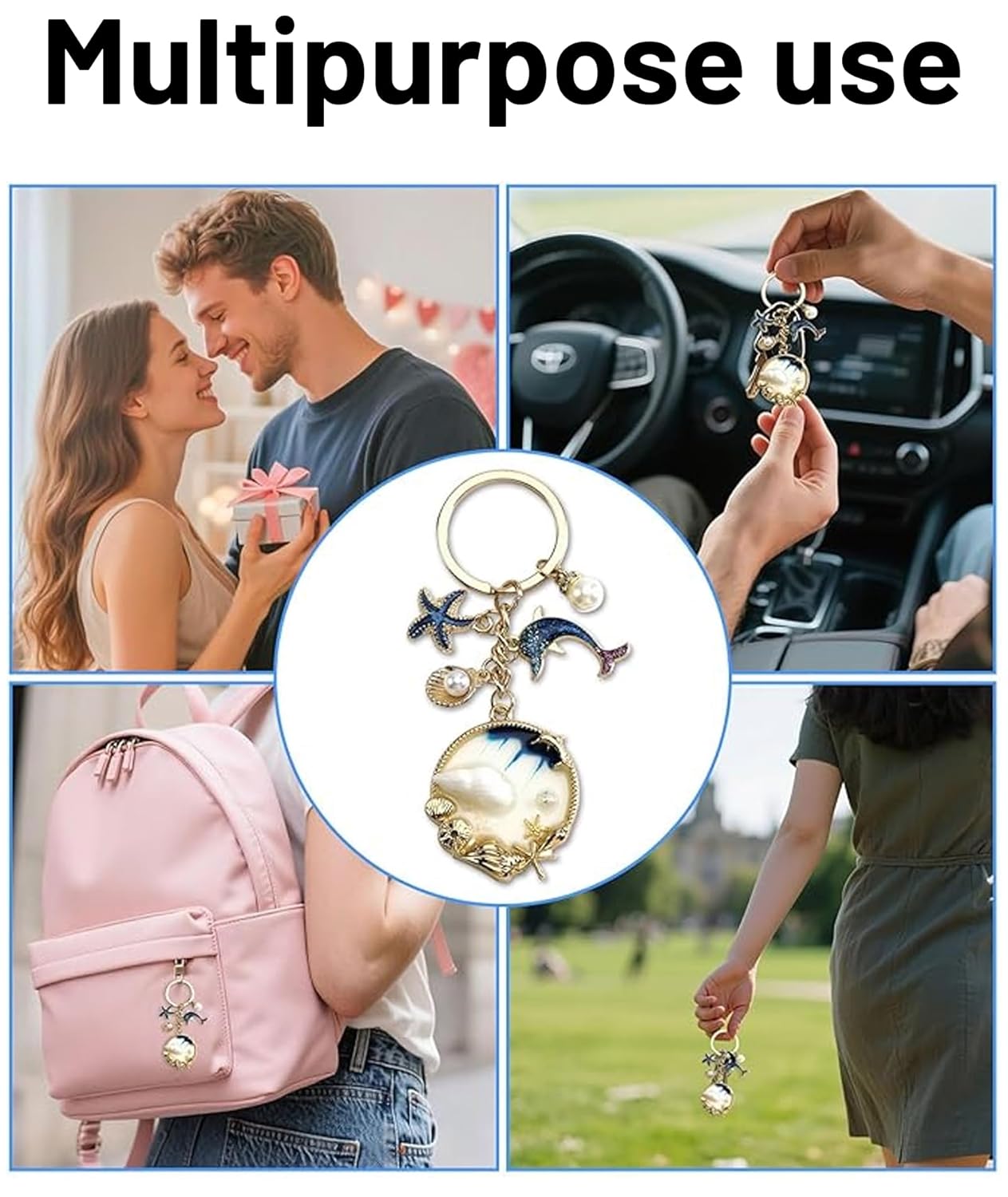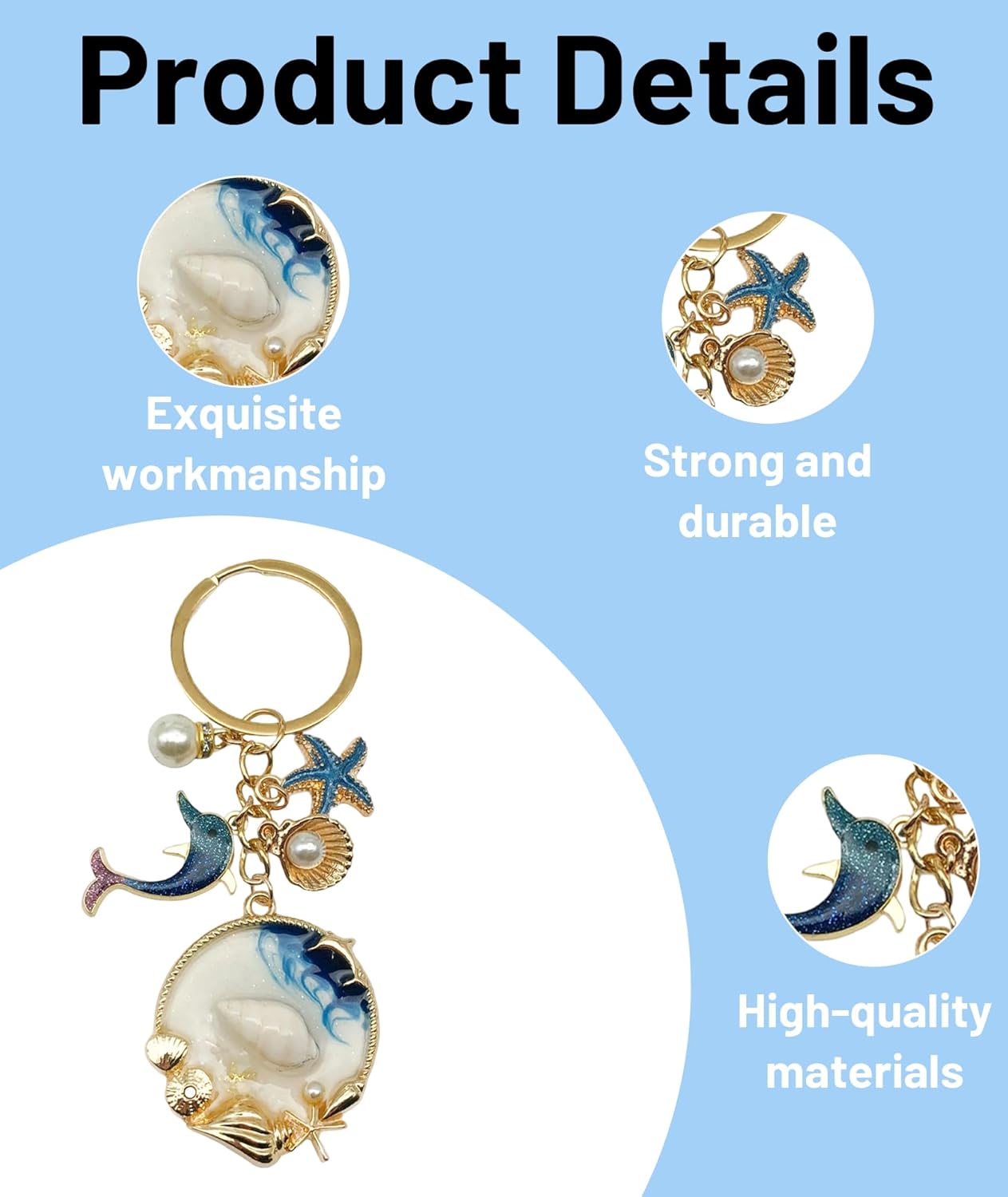 Enhance your everyday style with this charming sea star shell dolphin keychain. The aesthetic design features a delightful combination of sea creatures, perfect for adding a playful touch to your phone or bag. Made from durable zinc alloy with an enamel coating, this keychain ensures long-lasting use and vibrant colors. Easily attach it to your phone case, backpack, or keys for a personalized look. Ideal as a gift for friends and family who appreciate unique and fashionable accessories. Designed with a youthful aesthetic, this keychain offers a stylish way to express your personality.