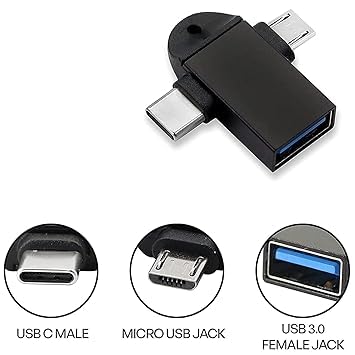 Generic Name : 2 in 1 Type C and Micro OTG Male to USB A 3.0 Female High Speed Data Transfer for Laptop Mobiles Tablet Smartphone Compatible C Type and Micro OTG Adapter Connector Devices (Black)