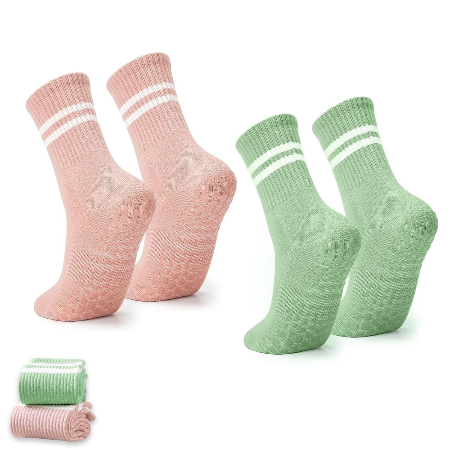 Brand: TecoKart Country of Origin: China Item Dimensions : 17*9*3cm Weight: 0.08kg Material: Cotton socks Color: Mix Style: Modern Uses: Yoga, Pilates, Gym,Pure Barre, Ballet,Dance Features: Manufacturer : Signa Selection | India 【 Premium Cotton Material 】: Elevate your workout with our yoga socks for women, crafted from high-quality cotton. These breathable, long socks for women ensure your feet stay cool and dry, even during intense sessions. The soft, skin-friendly material enhances comfort, making these cotton socks for women a must-have for any fitness routine. Whether it’s yoga, Pilates, or ballet, enjoy maximum comfort with each move! 【 Antl- Slip Silicone Design 】: Stay grounded with our grip socks! The silicone socks for women feature a non-slip design, providing reliable stability on any surface. The bottom of these pilates socks is lined with PVC glue, which not only absorbs shock but also protects your soles. Say goodbye to slips and slides and hello to confident, secure steps with our yoga socks for women anti skid. 【 Secure Fit With High Elasticity 】: Our gym socks for women are designed with high-elastic ribbed cuffs that keep your socks in place, no matter the activity. The snug fit ensures these women socks won’t fall off, giving you peace of mind whether you’re jogging, dancing, or doing Pilates. These anti slip socks for women offer the perfect blend of flexibility and support. 【 Fashionable Women Socks 】: Get the best of both worlds with our stylish socks of two—one pair in vibrant green and the other in a chic pink. These versatile socks for women allow you to mix and match with your favorite workout gear, adding a pop of color to your routine. Whether you’re hitting the gym or attending a yoga class, our yoga socks for women bring style and functionality together. 【 Versatile Fitness Essential 】: From yoga and pilates to ballet and dance, our long socks for women are perfect for a wide range of activities. The grip-enhancing design and shock-absorbing features make these the ultimate pilates socks, ensuring you stay comfortable and secure during every workout. Whether you’re an experienced yogi or a fitness newbie, these gym socks for women are your ideal workout partner.