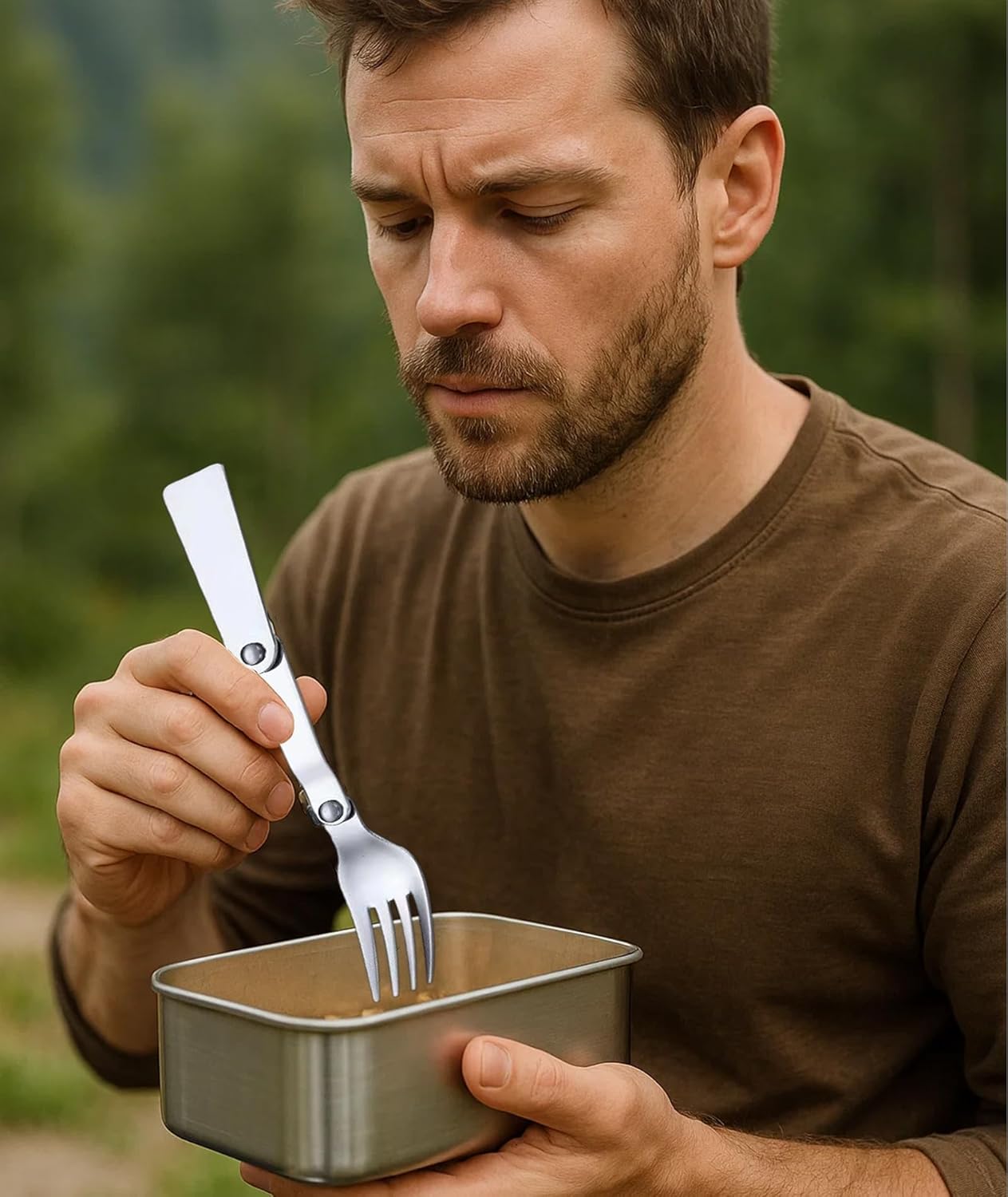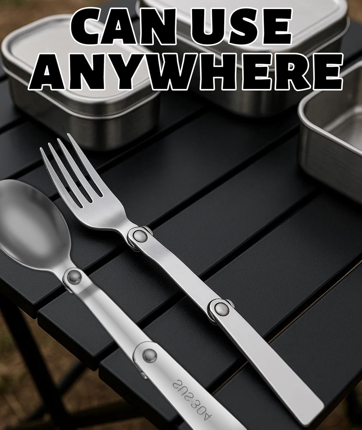 Versatile Outdoor Use: Foldable fork and spoon from camping to business trips, this foldable cutlery set for travel provides eating utensils wherever you go.