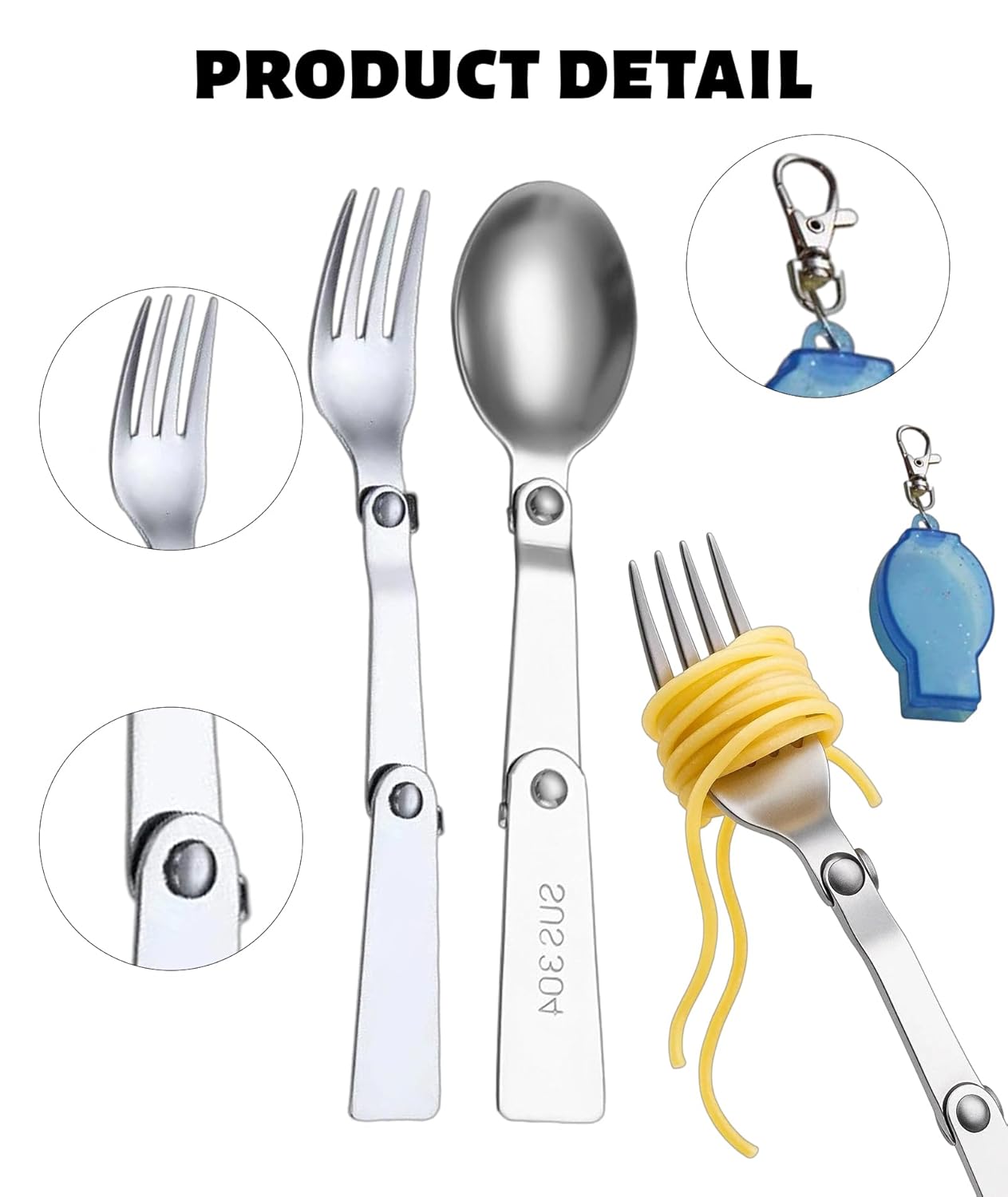 Complete Travel Set: This foldable fork spoon set includes two utensils that collapse for compact storage, ideal for foldable spoon and fork for travel needs.