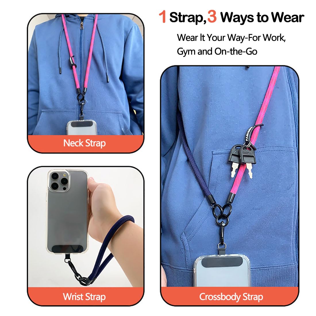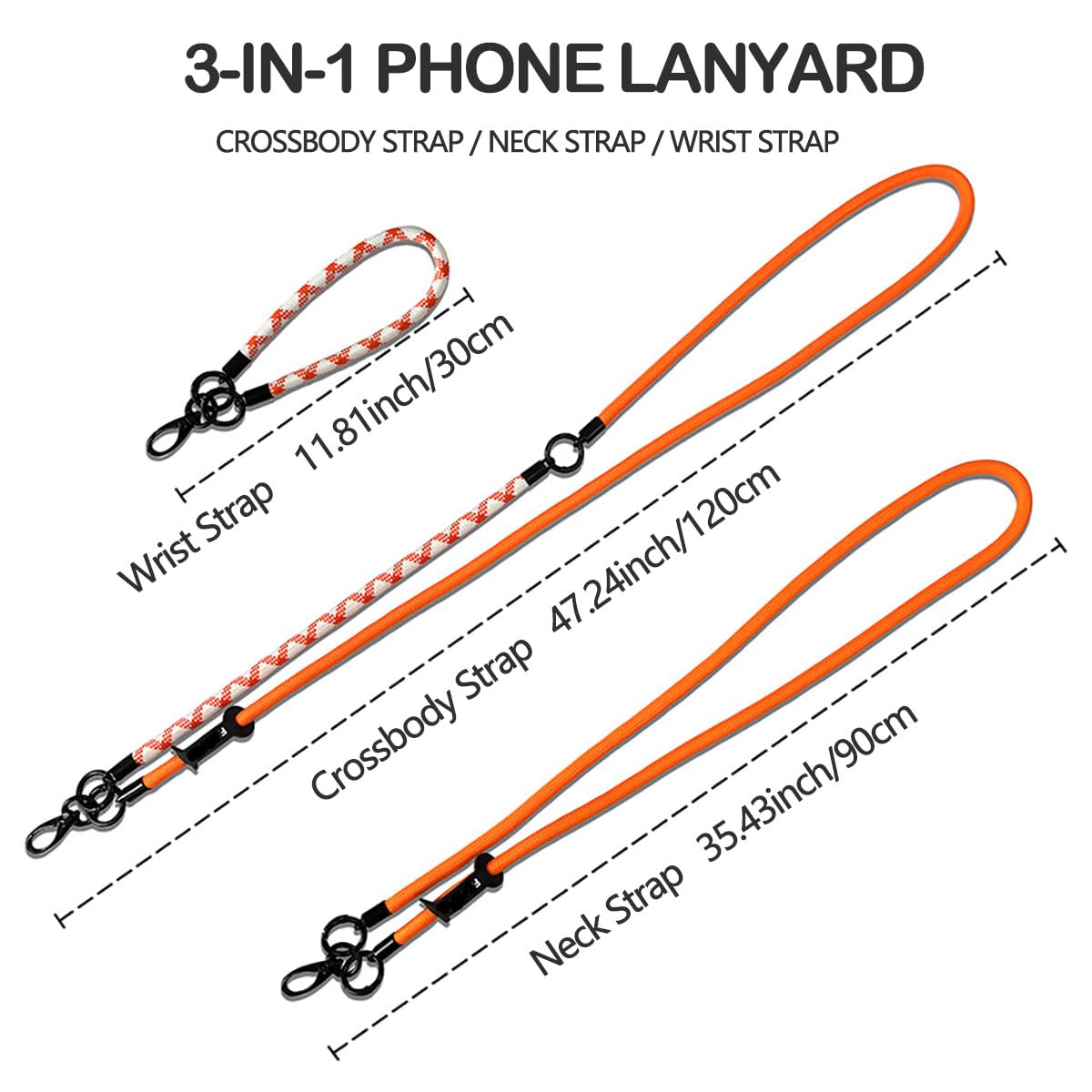 3-in-1 Adjustable Anti-Theft Phone Lanyard with Tether Tab, Universal Crossbody Neck Wrist Strap for most mobile phone cases, cameras, headphones, USB flash drives, ID cards