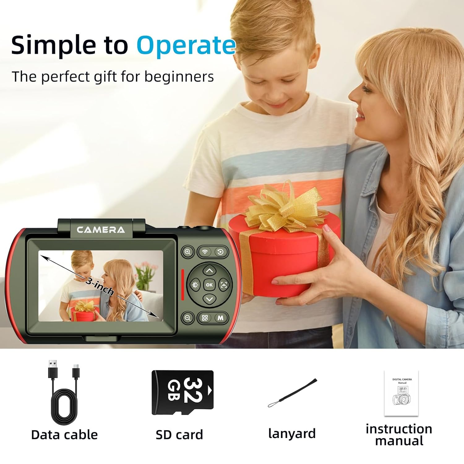 Cameras for photography:32GB memory card, Type-C cable, and instruction manual. Easy to operate, ideal as a holiday gift (Christmas/birthday/Mother’s Day, etc.)