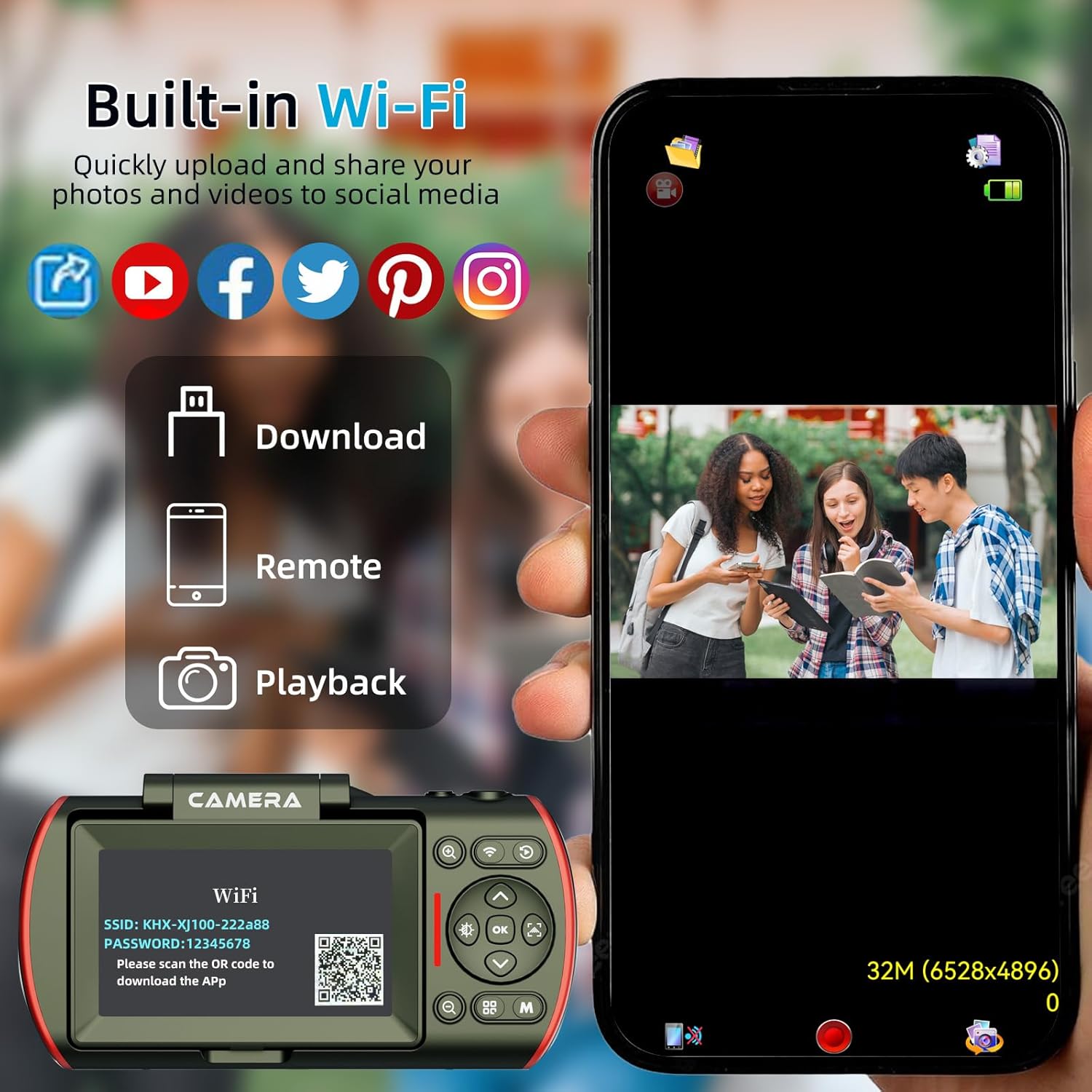 Wi-Fi Digital Cameras:Built-in WiFi transmission allows photos and videos to be instantly transferred to your phone and shared on social media platforms. With its lightweight body and simple operation, this camera is ideal for teens, beginners, and seniors alike, making it the perfect first camera for anyone.