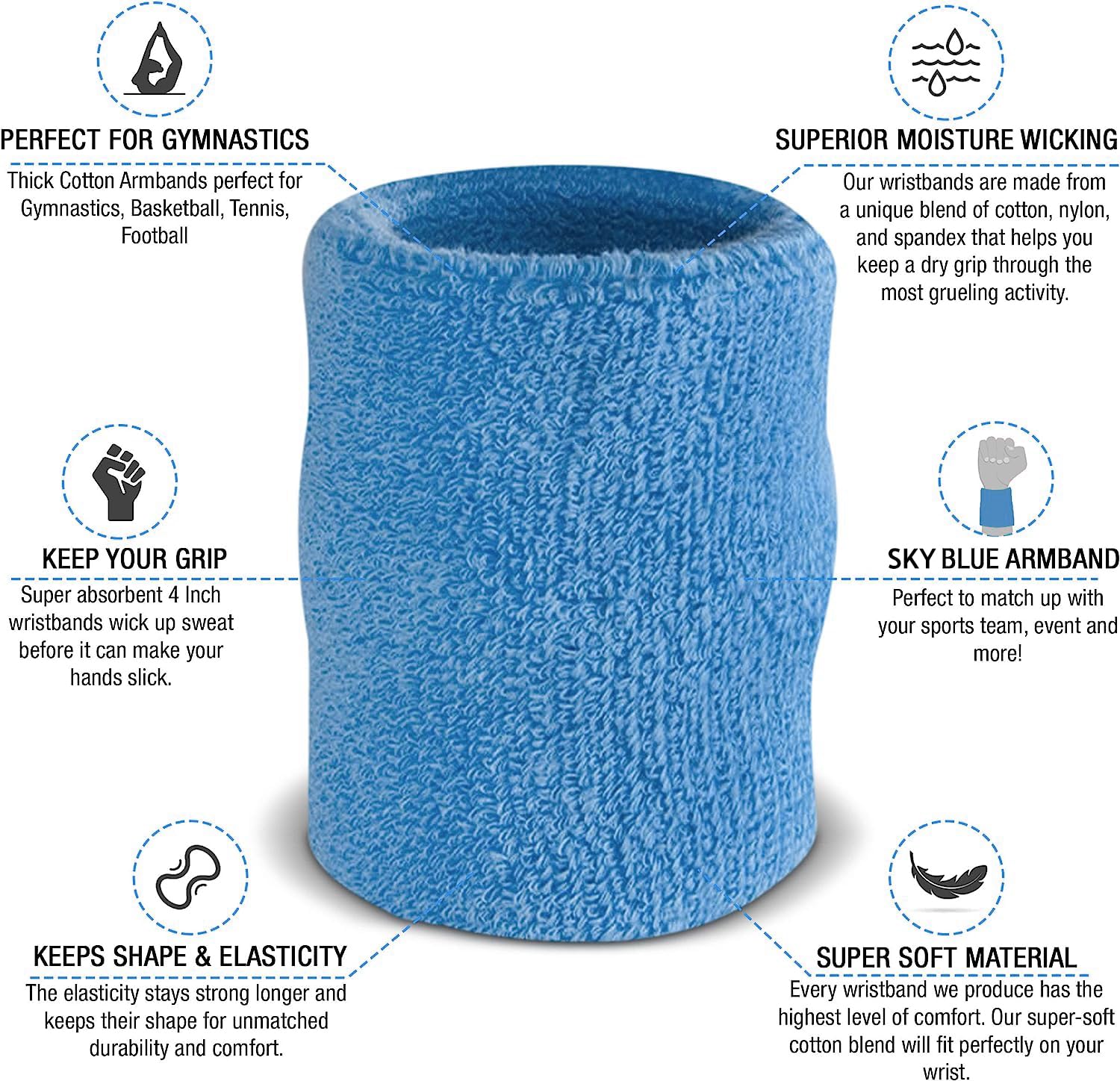 5 x 3 Inch Sports Wrist Band Absorbent Sweatbands for Football Basketball Running Athletic Sports and Working Out, Pack of 1 (Sky Blue)