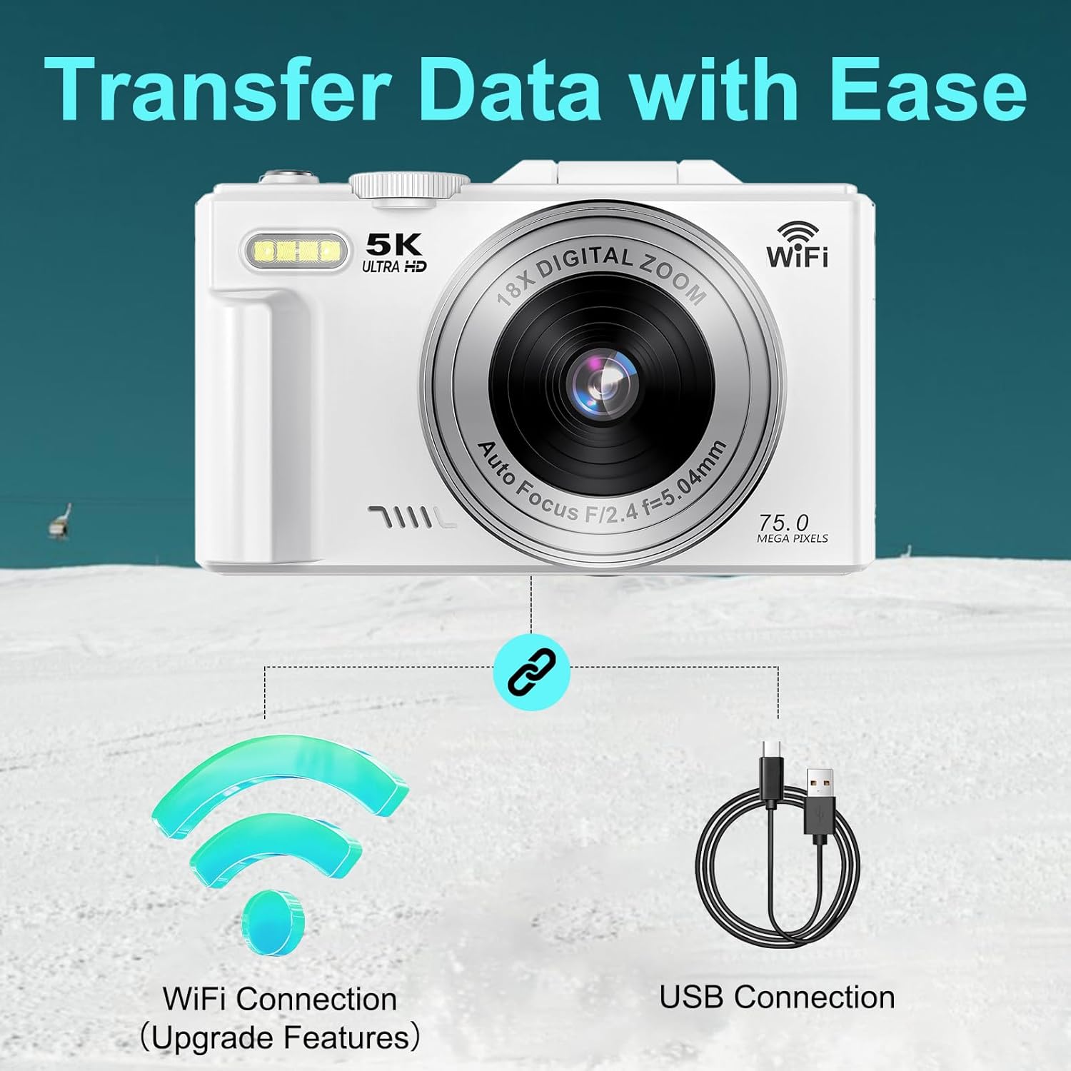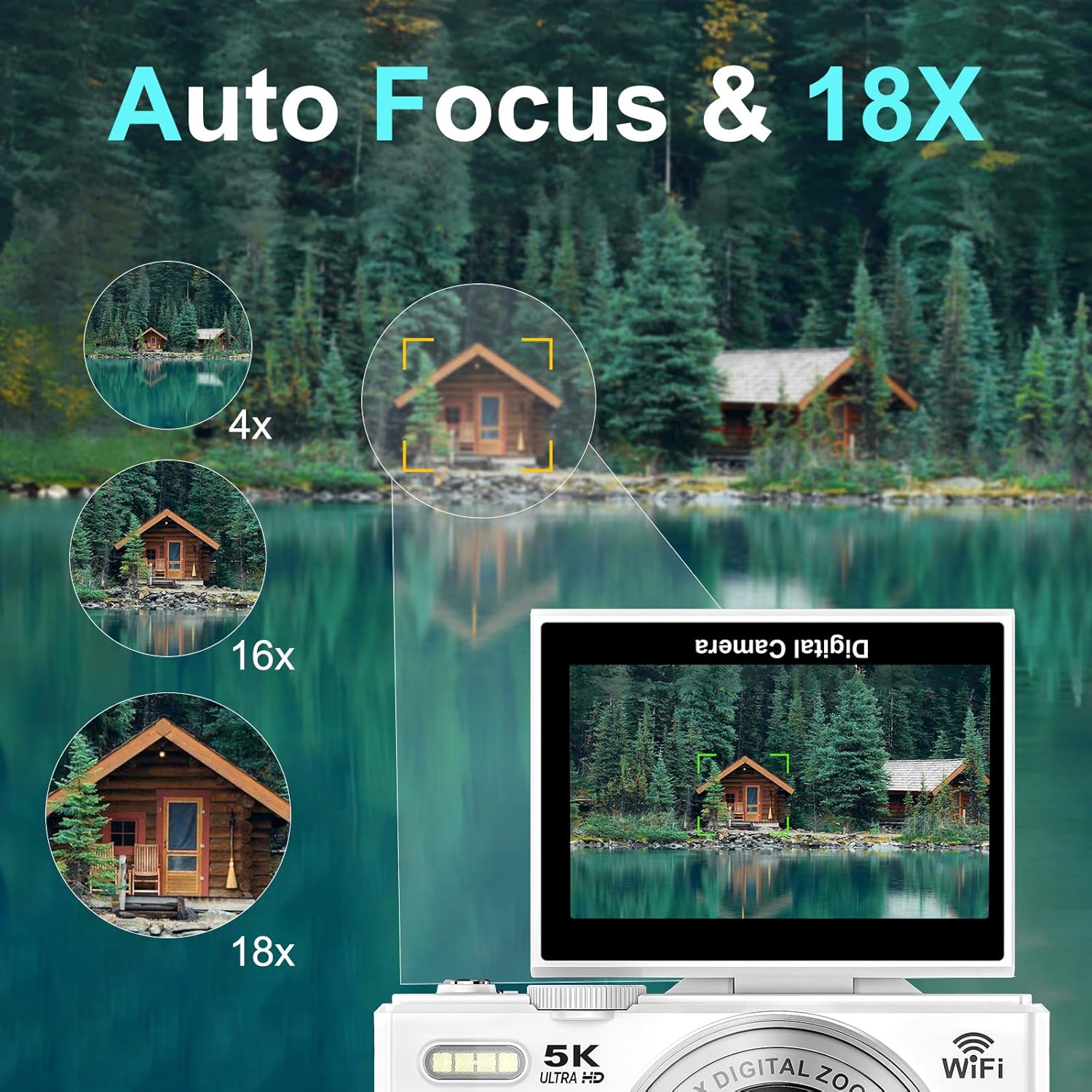 5K Digital Camera for Photography – 75MP WiFi Vlogging Camera for YouTube – UHD 18X Zoom Digital Cameras with Flip Screen 3″ 180° – Travel Photography Flash Camara for Beginners & Adults