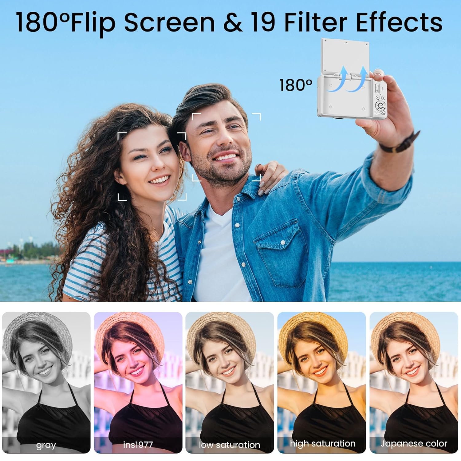 3.0″ 180° Flip Screen Camera: The 3.0 inches 180°flip screen compact camera, making it easy to frame yourself for stunning selfies and vlogs. This portable compact digital camera is perfect for travel, vacations, and everyday use, fitting easily in your pocket or bag.