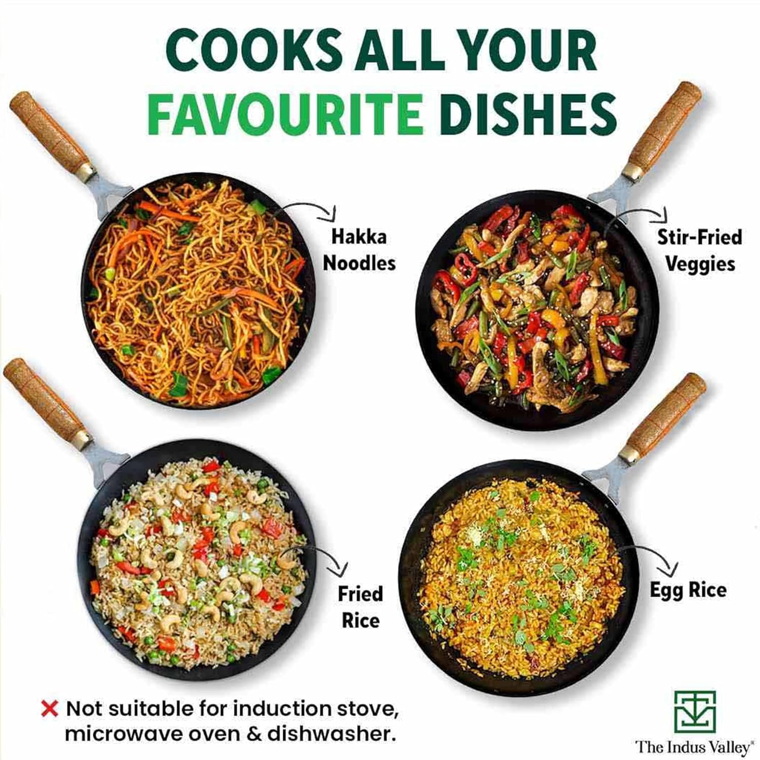 👨🍳 𝐍𝐀𝐓𝐔𝐑𝐀𝐋𝐋𝐘 𝐍𝐎𝐍-𝐒𝐓𝐈𝐂𝐊 – No food sticking. PRE-SEASONED with 100% vegetable oil