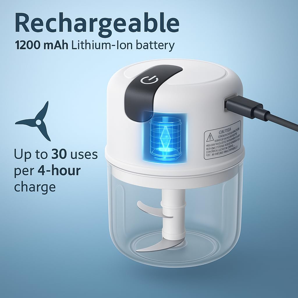 𝐅𝐚𝐬𝐭 & 𝐄𝐟𝐟𝐨𝐫𝐭𝐥𝐞𝐬𝐬 𝐂𝐡𝐨𝐩𝐩𝐢𝐧𝐠 : Quickly chop, mince, or blend ingredients in just 30–60 seconds with a powerful 30W motor and sharp stainless steel blades—ideal for garlic, onions, fruits, veggies, meats, and more.