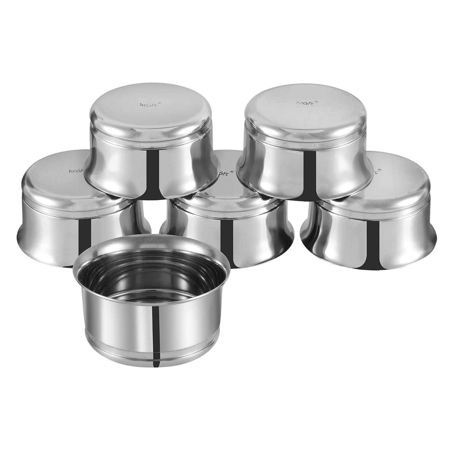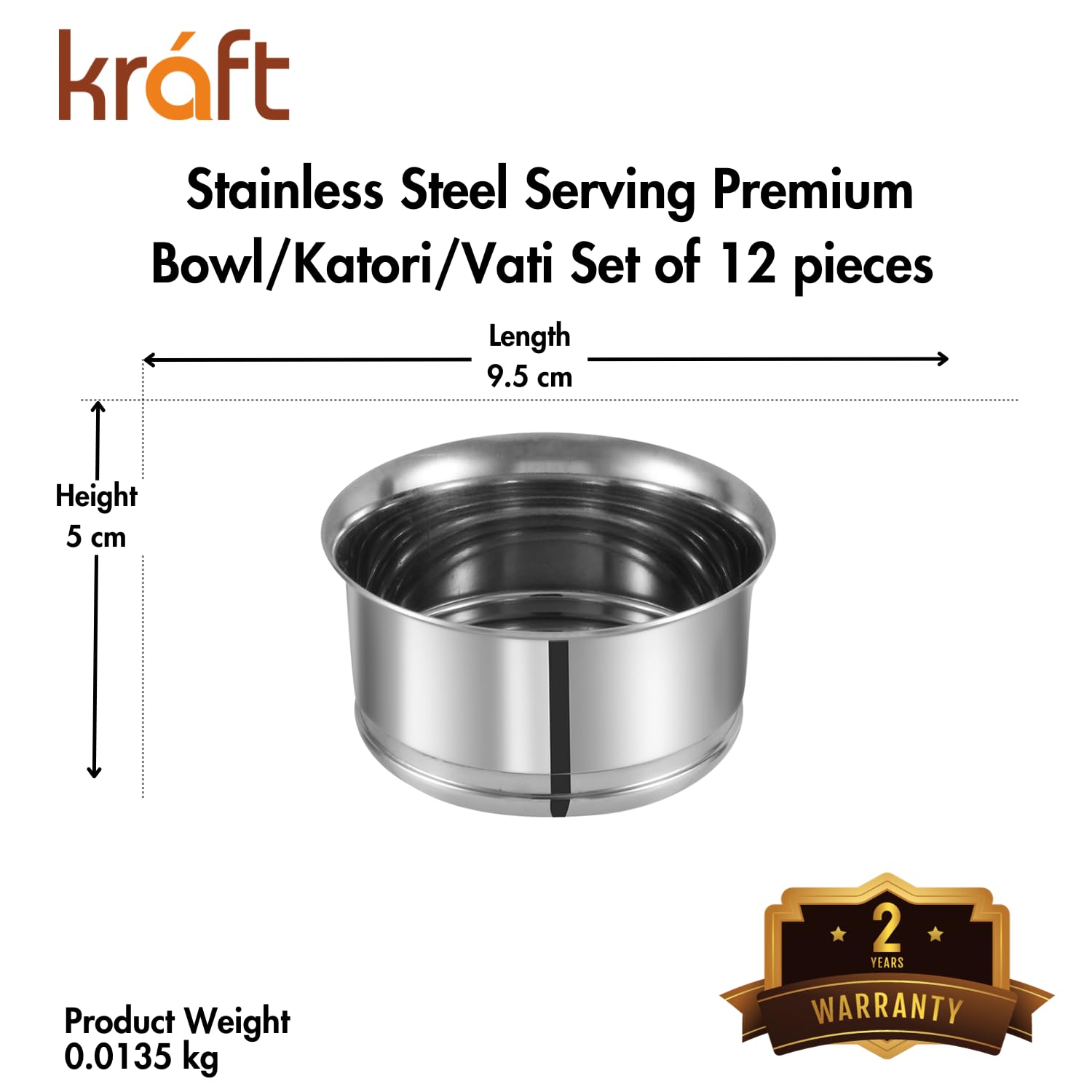 𝐏𝐄𝐑𝐅𝐄𝐂𝐓 𝐒𝐈𝐙𝐄 & 𝐒𝐄𝐓 – The size of the stainless steel katoris are compact that makes it easy to store in kitchen cupboards. When not in used each bowl can be stacked inside one another consuming lesser storage space.. Available in sets of 12, you’ll have enough for family and guests.
