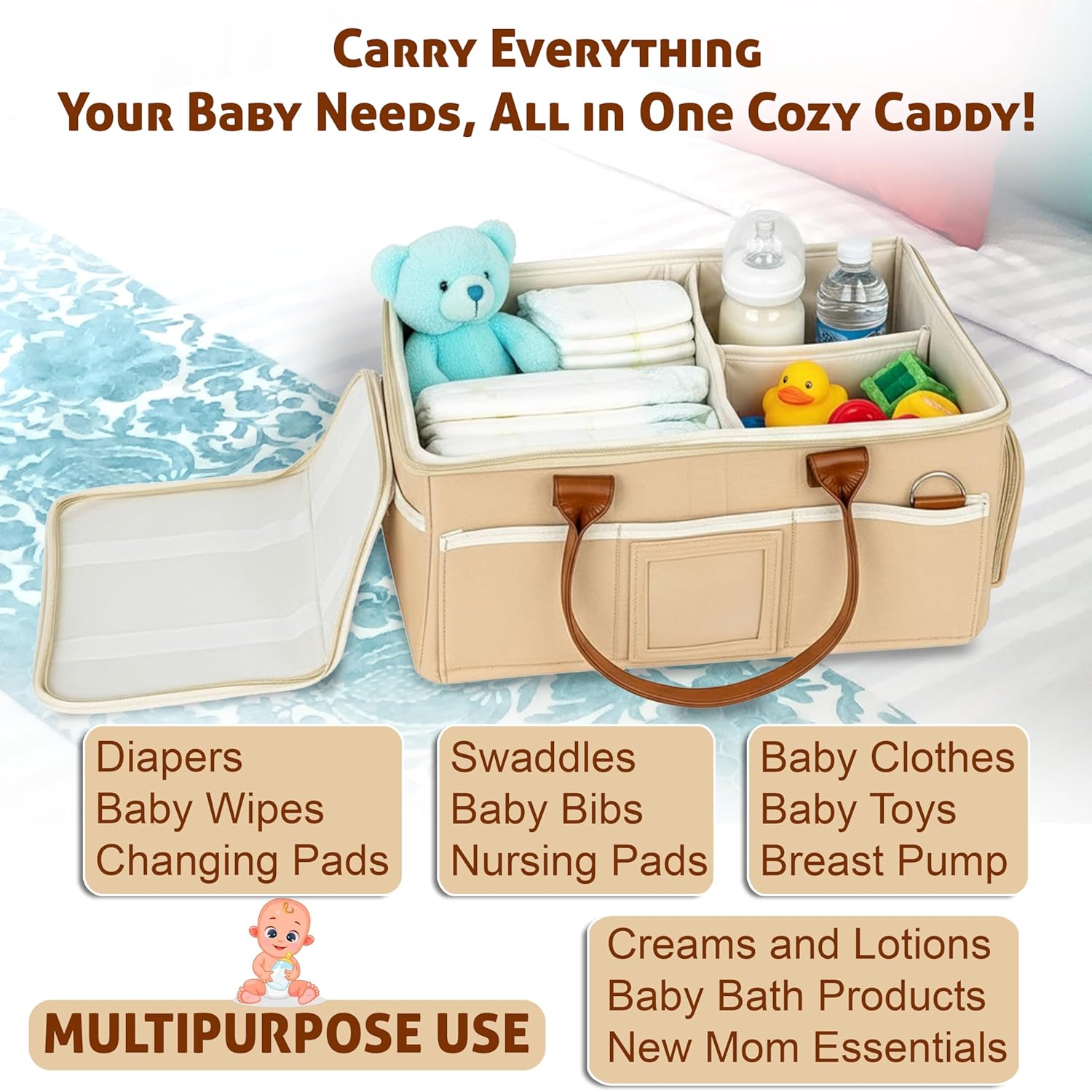 IDEAL FOR NEWBORN BABY ESSENTIALS:Perfect for storing and organizing newborn baby products, this diaper caddy keeps all your baby’s essential items in one place, making it easier to stay organized during busy moments.