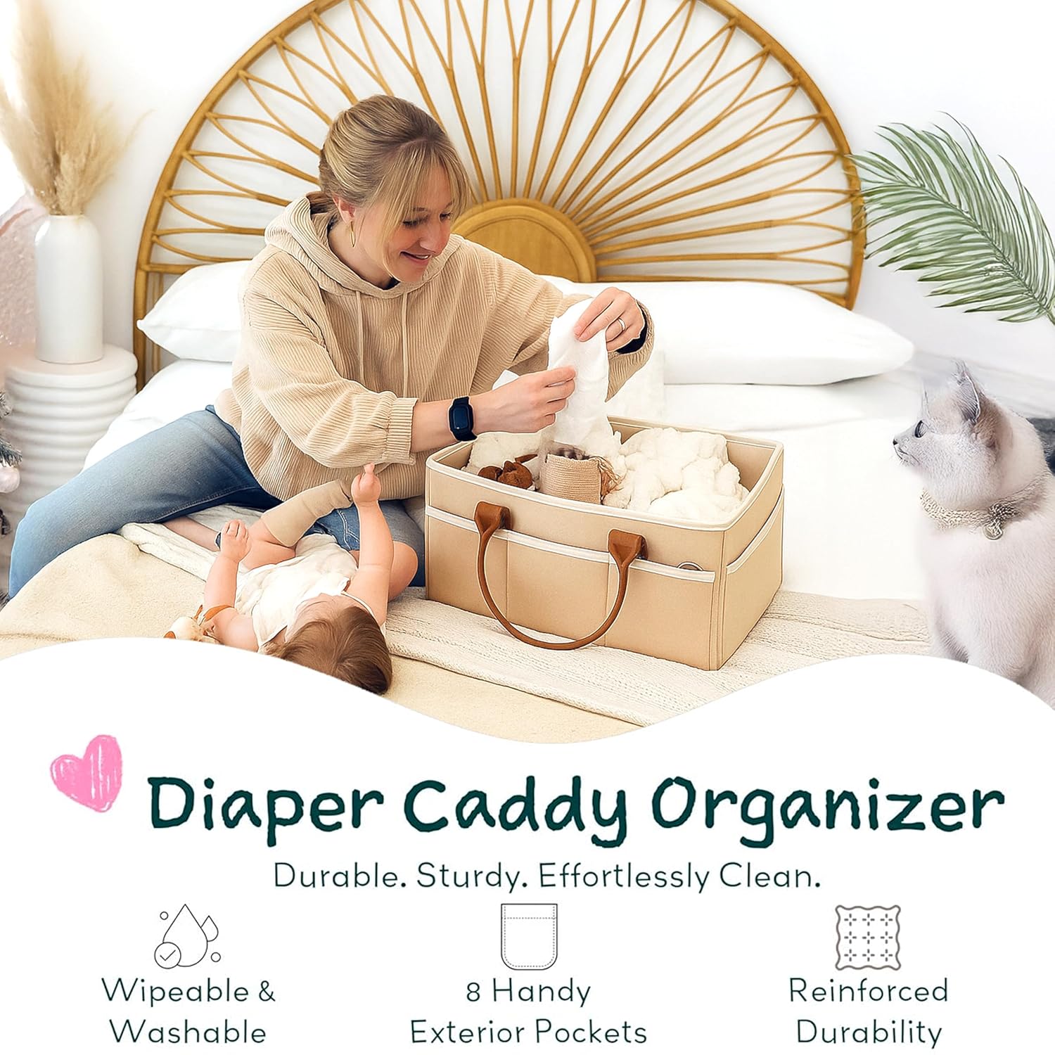 LIGHTWEIGHT & DURABLE FELT MATERIAL:Made from soft yet durable felt material, this diaper caddy is lightweight and easy to handle while maintaining long-lasting durability for everyday use.
