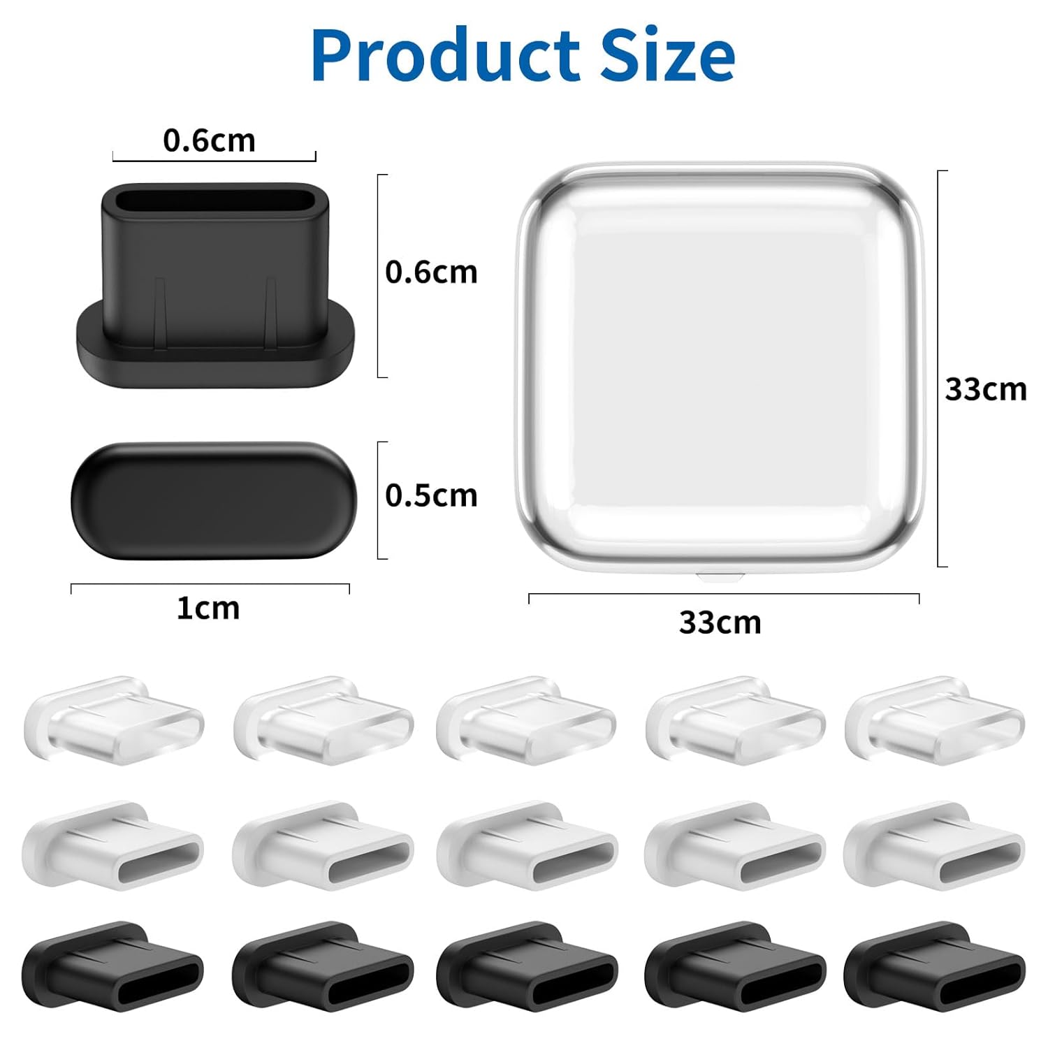 Precisely Cut: These USB C anti dust caps are with classic black/white/clear, and are made of soft silicone material with precise cut, which can snugly fit into your cell phone charging port and won’t damage your port. Small & cute, easily blend with your devices and give them a sleek look