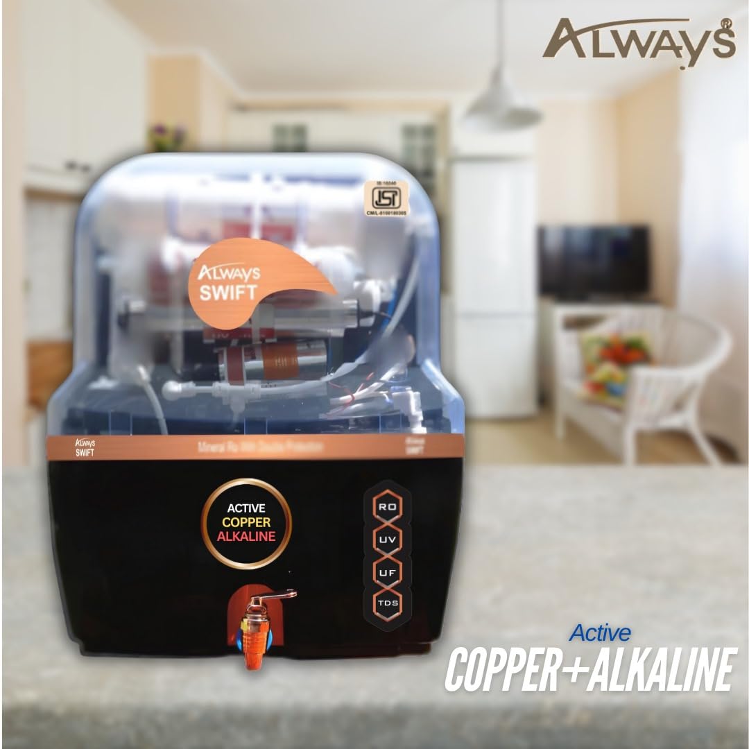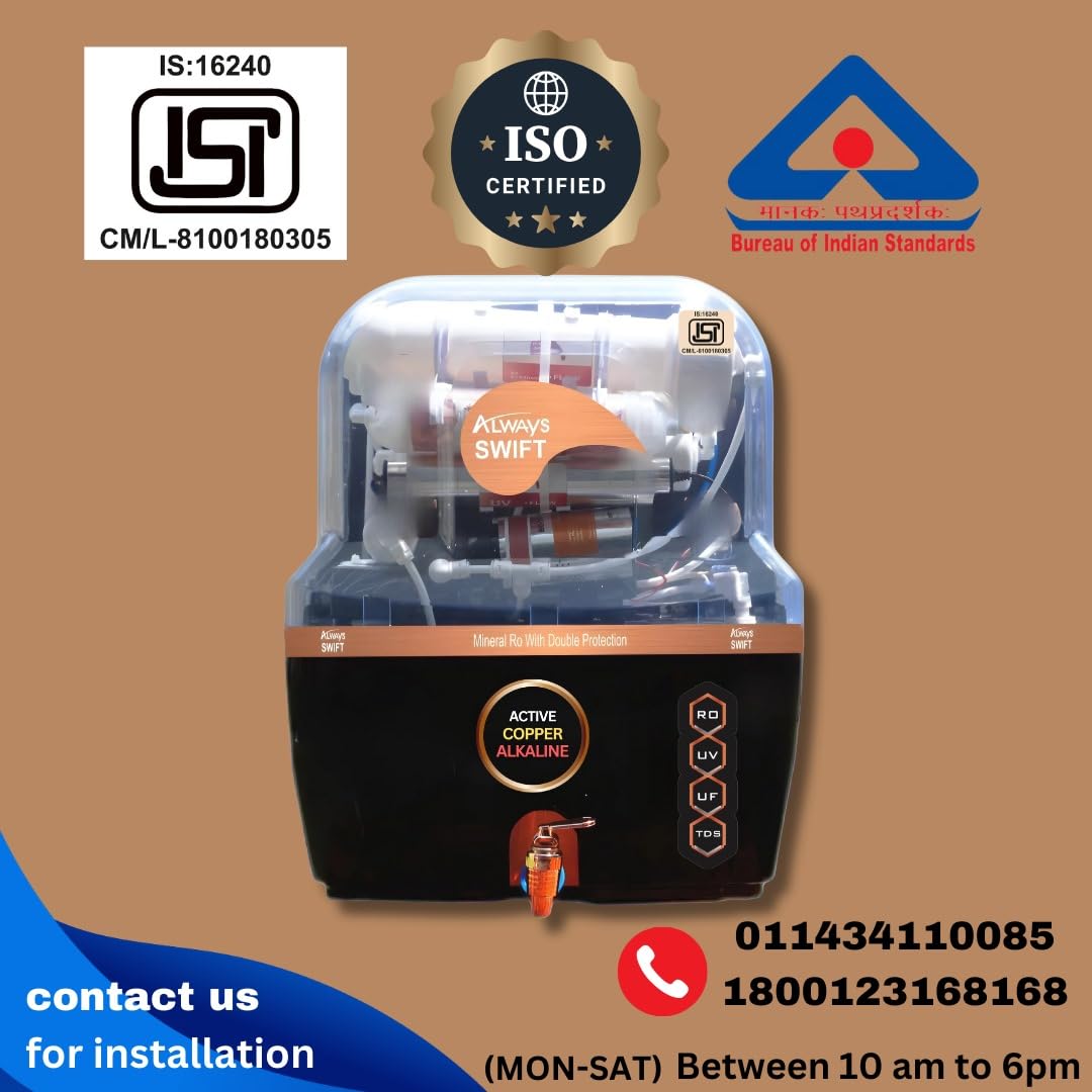 Advanced Filtration Technology: Always Swift Copper ISI MARK 15 Litre Water Purifier features advanced RO + UV + UF + TDS + Copper filtration technology, ensuring pure and safe drinking water for home and office use.