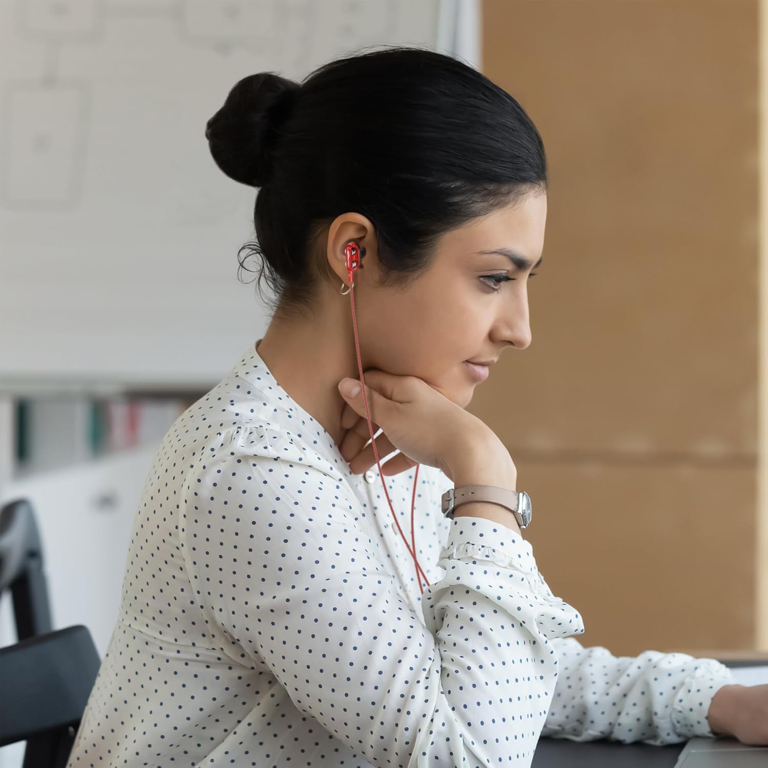 amazon basics in-Ear Wired Earphones with 9 mm Dual Drivers, in-Line Mic, Powerful Bass, Noise Isolation, 3.5 mm Audio Jack (Black and Red)