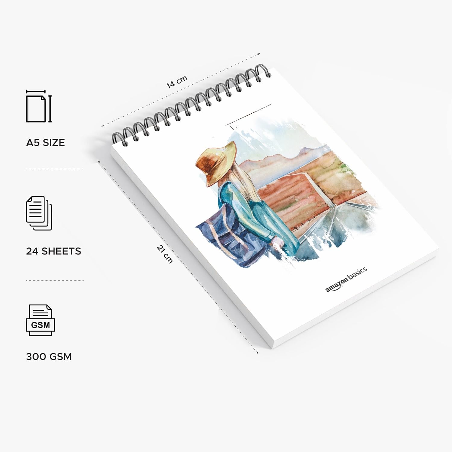 The Amazon Basics Watercolour Book is an essential tool for artists seeking high-quality paper for various media. Featuring 24 perforated pages of 300 GSM bleed-free paper, this A5-sized book is perfect for watercolor, acrylics, gouache, pastels, ink, and mixed media, offering a smooth and durable surface that brings your artwork to life. The perforated pages allow for easy removal without damaging other sheets, while the wiro-bound, lay-flat design provides a seamless creative experience across both pages. Compact and portable, this watercolour book is ideal for artists who want to create on the go, ensuring professional results every time.