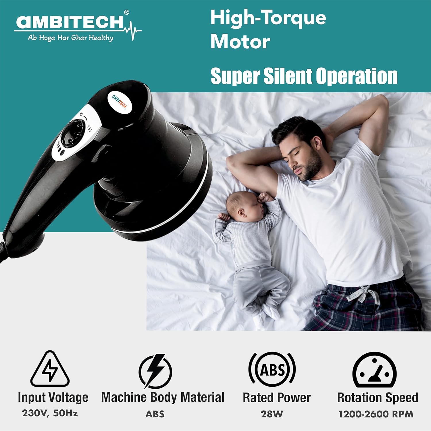 AmbiTech Premium Personal Massager With 1 Year Replacement Warrenty| Deep Tissue Percussion Massage for Shoulder, Leg, Foot, Muscles|Electric 4 Versatile Massage Heads