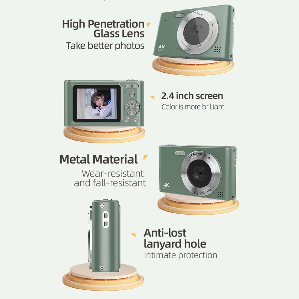 【16X Digital Zoom & 2.4 Inch Screen】The digital camera has a 16X digital zoom function, which allows you to see the near and far landscape clearly. The 2.4-inch screen allows for immediate viewing of your footage and photographs, bringing your images to life with vivid colors and crisp detail.