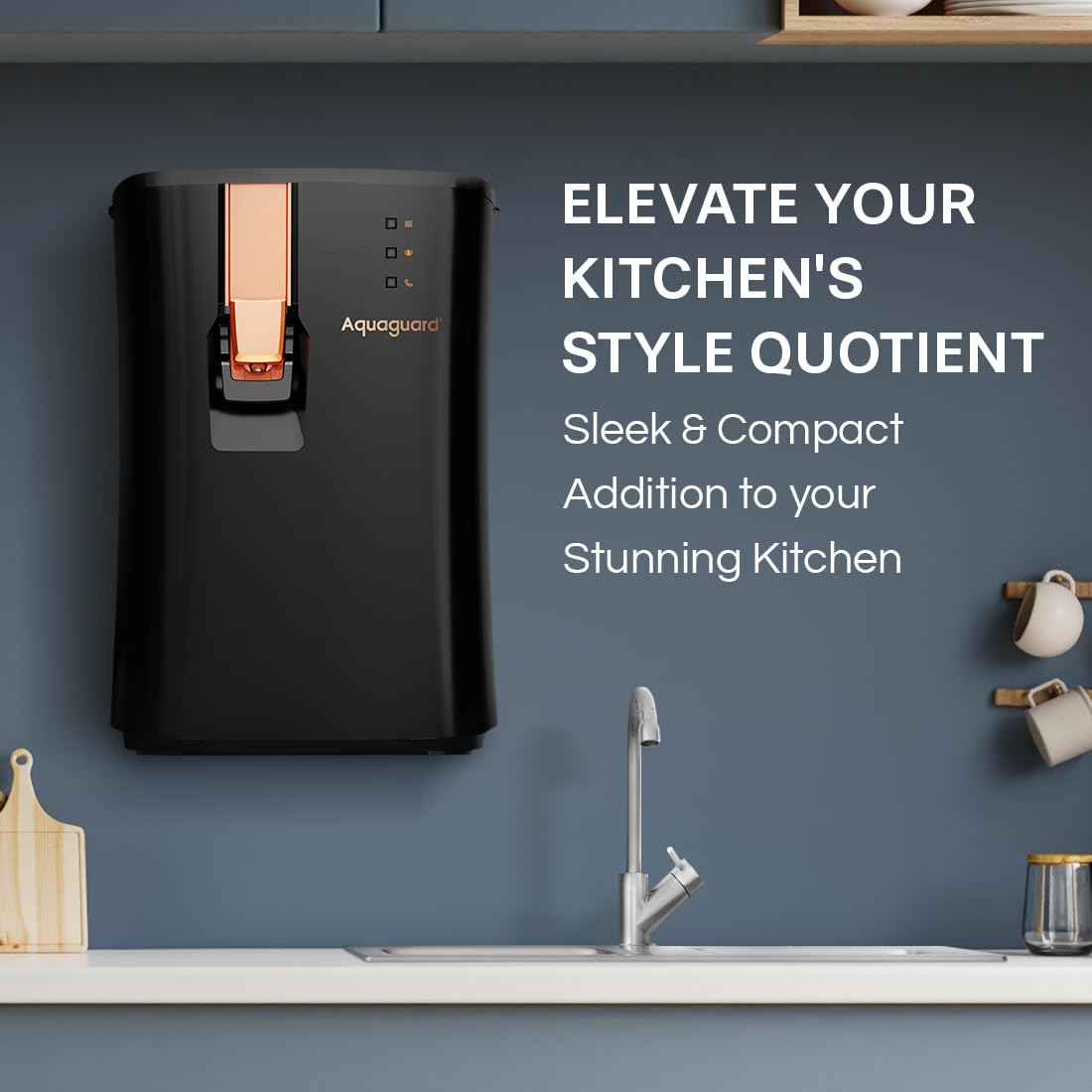 Convenient Features- a) High Storage Capacity, b) Smart LED Indication- Alerts you with service reminders, tank full indications, etc., c) Energy Saving Mode- Purified stored water can be dispensed without electricity. d) Supreme Aesthetics- Compact and stylish design that perfectly blends with your kitchen aesthetics, e) Flexible Installation- Wall-mounted/ Countertop