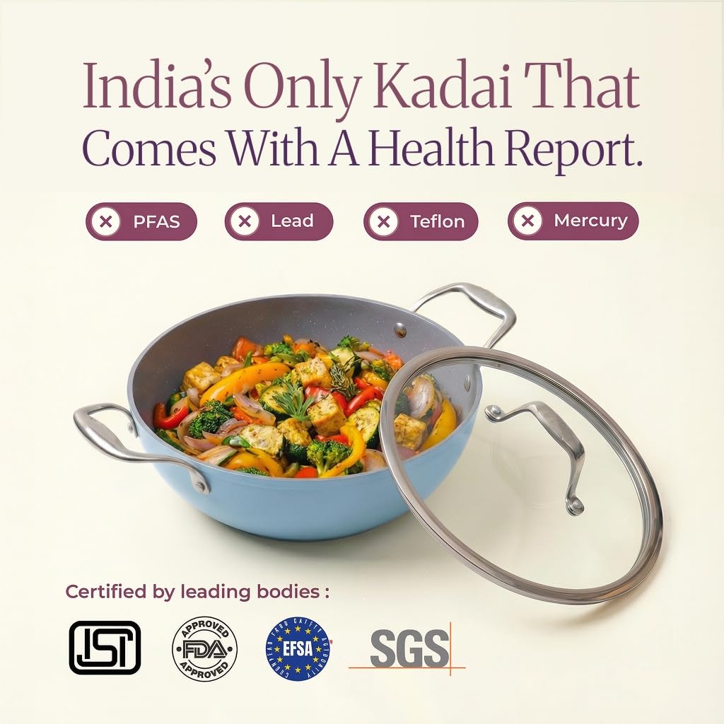 INDIA’S ONLY KADAI THAT COMES WITH A HEALTH REPORT: 100% Free from Microplastics, Teflon, PFAS, Lead, Mercury and 300+ toxins.