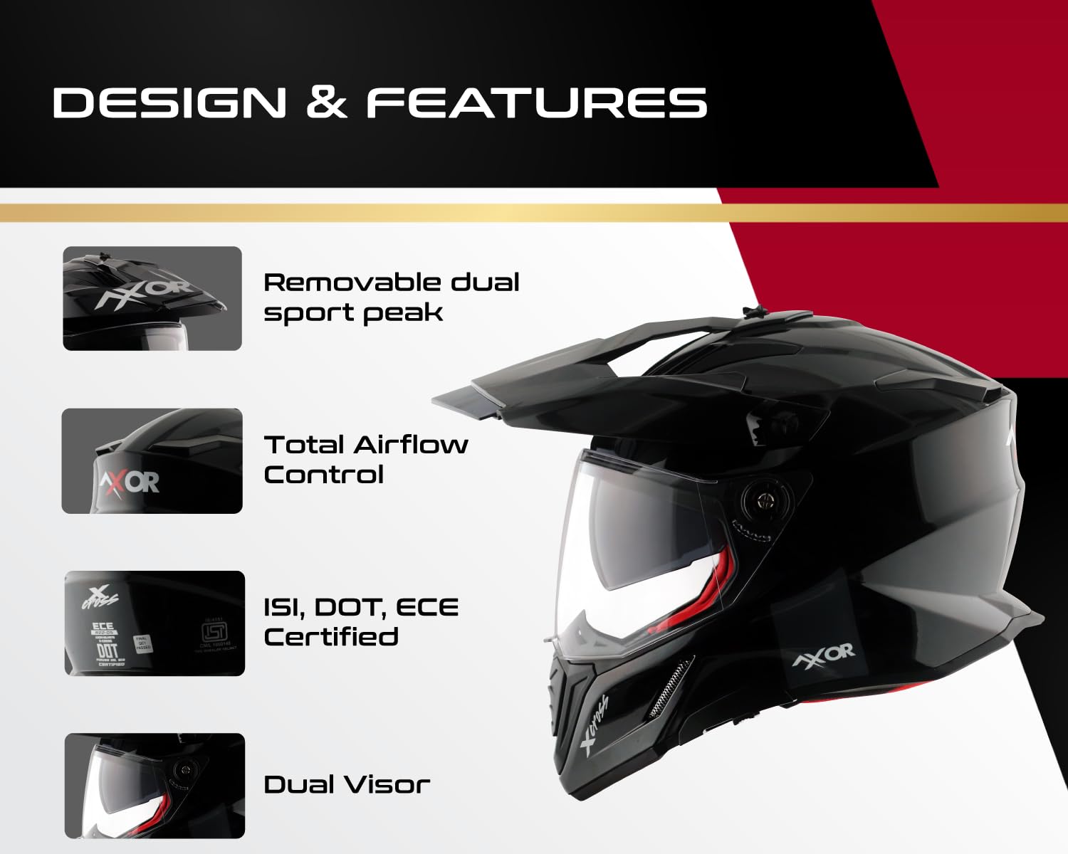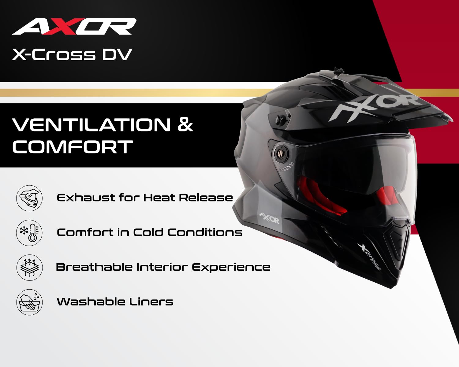Embrace timeless elegance and stay in vogue with the X-Cross Dual Visor Helmets from AXOR, featuring a range of classic single colors. Opting for basic hues never goes out of style and ensures you never feel outdated. With a simple yet sophisticated design, these helmets allow you to effortlessly flaunt your personal style.