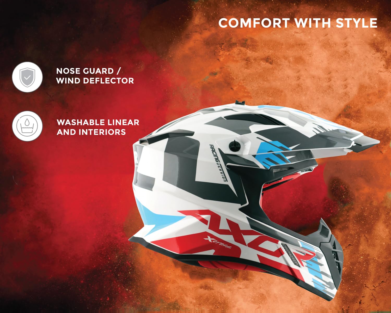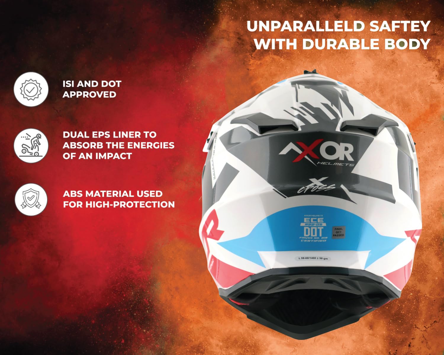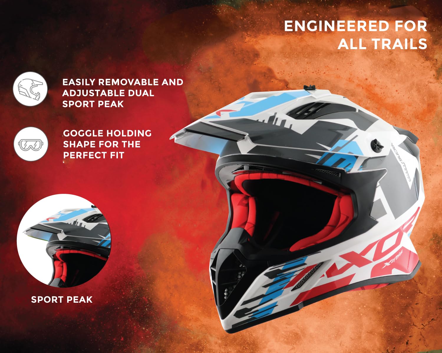 Experience an exhilarating ride like never before with the Axor X-cross X1 graphic helmet. Meticulously crafted to add a thrilling edge to your life, this helmet exudes elegance, elevating your off-roading style to new heights. Prepare to make a bold statement as you redefine the norms of adventure and embark on an unforgettable journey. Unleash the thrill and let the Axor X-cross X1 graphic helmet be your ultimate companion on the road less traveled.