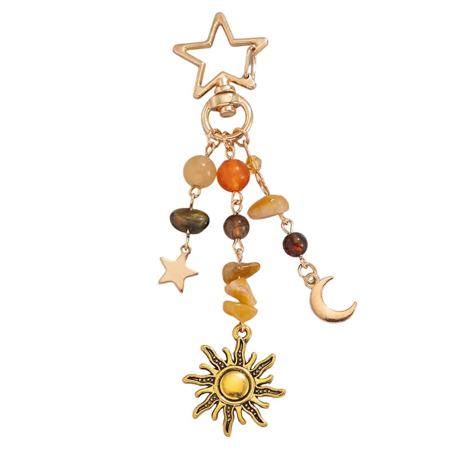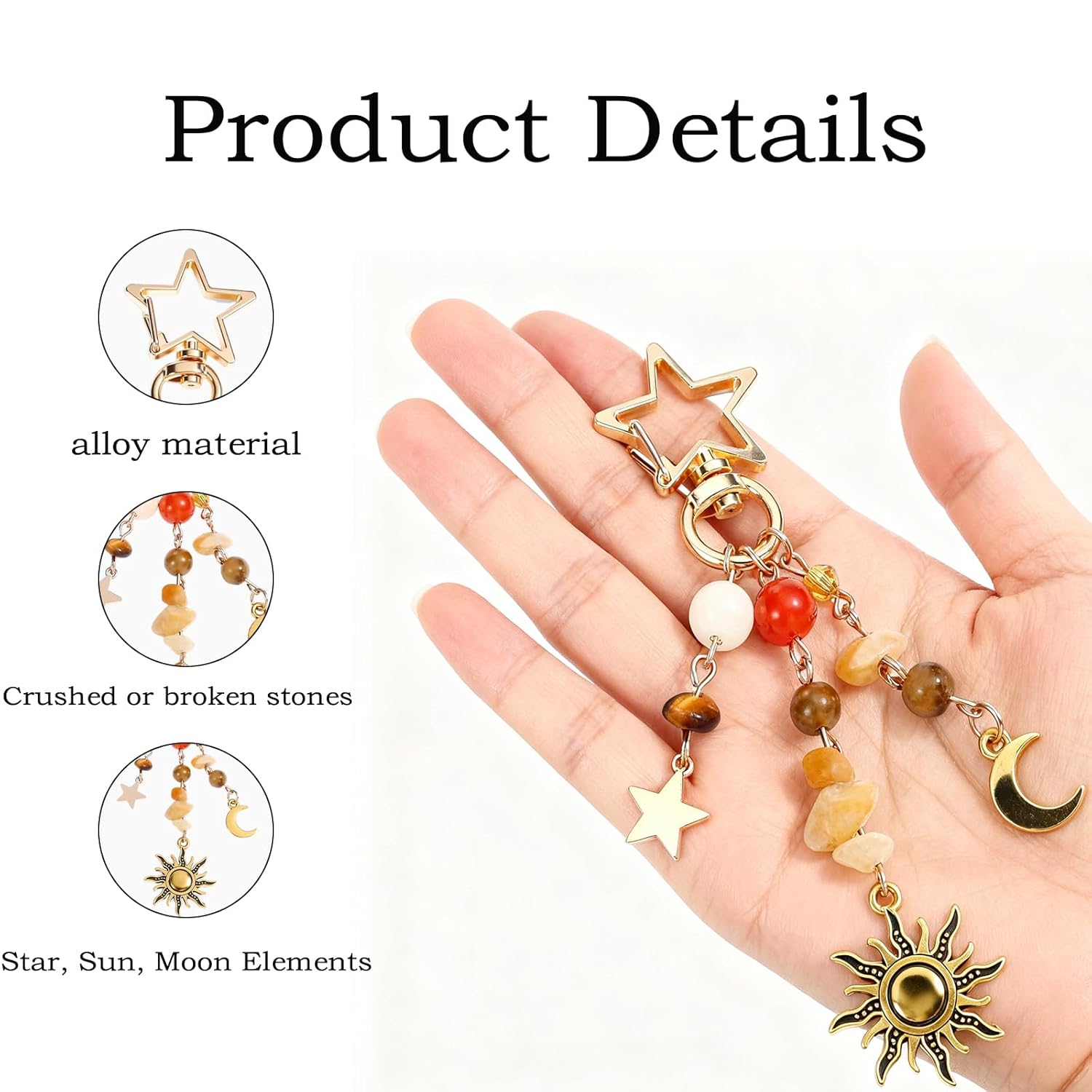 Elevate your accessory game with our vintage-inspired moon and star keychain. This charming bag charm is designed to add a touch of fashion to your everyday style. Crafted from high-quality alloy and adorned with glass beads, it offers a durable and stylish option for accessorizing your bags, wallets, or keys. The lightweight design ensures comfort while the electroplating finish provides a long-lasting shine. Whether you’re looking to personalize your belongings or searching for the perfect gift, this cute keychain is a versatile choice for fashion enthusiasts and gift seekers alike. Key Features:Vintage moon and star design with alloy and glass beads, Electroplating finish for durability and shine, Lightweight at 10.8g for easy carrying, Perfect for accessorizing bags, wallets, and keys, Great gift option for special occasions.