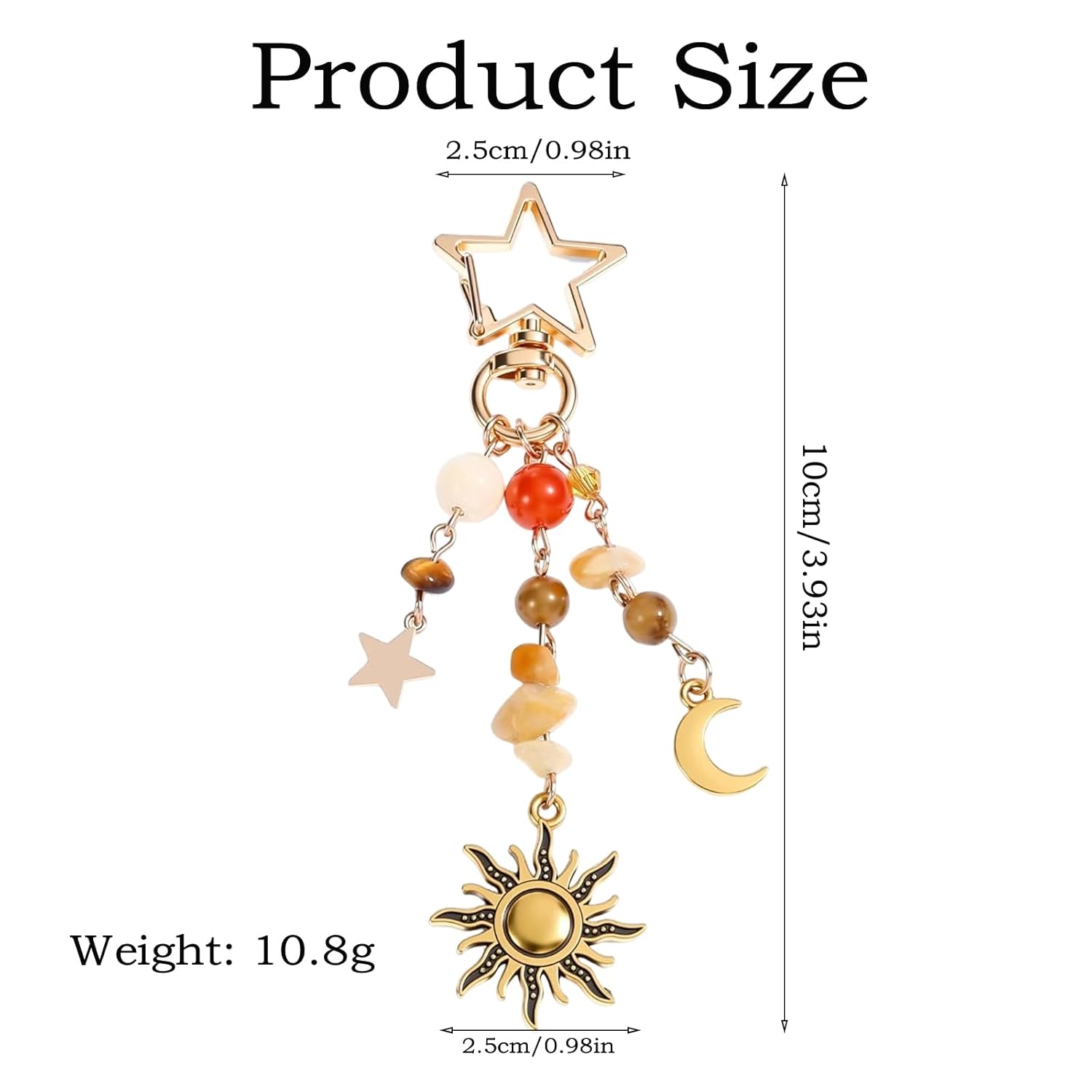 Elevate your accessory game with our vintage-inspired moon and star keychain. This charming bag charm is designed to add a touch of fashion to your everyday style. Crafted from high-quality alloy and adorned with glass beads, it offers a durable and stylish option for accessorizing your bags, wallets, or keys. The lightweight design ensures comfort while the electroplating finish provides a long-lasting shine. Whether you’re looking to personalize your belongings or searching for the perfect gift, this cute keychain is a versatile choice for fashion enthusiasts and gift seekers alike. Key Features:Vintage moon and star design with alloy and glass beads, Electroplating finish for durability and shine, Lightweight at 10.8g for easy carrying, Perfect for accessorizing bags, wallets, and keys, Great gift option for special occasions.