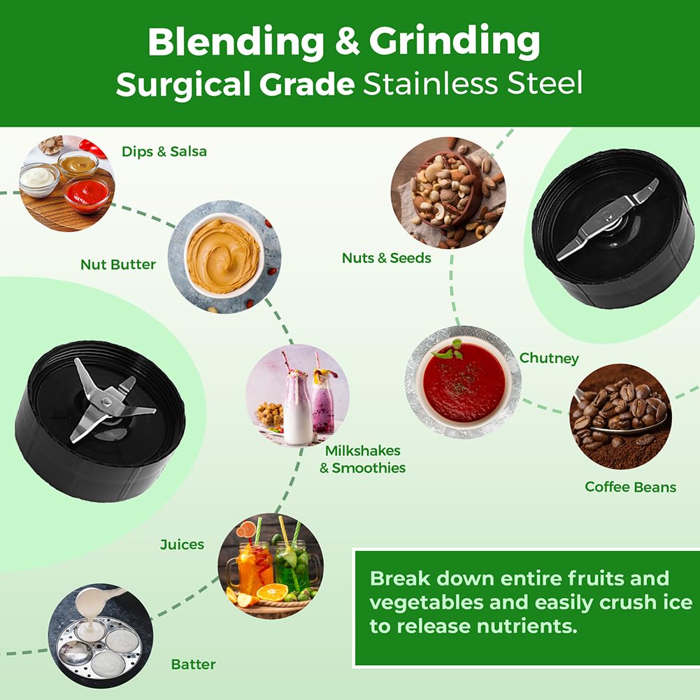 STAINLESS STEEL BLADES WITH LEAK-PROOF BPA FREE TRITAN JARS : Specially designed blending blade and grinding blade makes it easy to get the finest results is very less time. Will not leak, crack or dent thanks to robust double ball bearing cutter assemblies, premium stainless steel, and shatterproof tritan lids and locking tabs