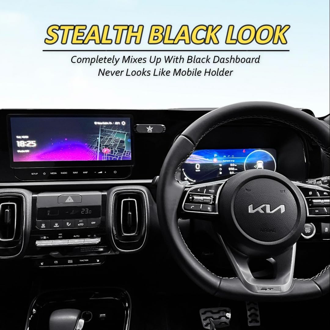 This is Blackstar’s Revolutionary Magnetic Mobile Holder . This is the One That Started it All . Its 1st Generation Blackstar Mobile Holder . Its Made of Metal Body and Neodymium Magnets . Neodymium Magnets are World’s Strongest and Expensive Magnets which Do Not have any wrong or ill effect on Mobiles or Other Electronics Gadgets . Magnetic Force is so Strong that your Mobile will not fall during Hardest / Toughest Bumps on Roads . Why Choose This One of All of Other Blackstar Mobile Holders ? …. This Mobile Holder works on Frontal Areas of Dashboard Only . This is Not to be Used on Dashboard Top Areas of Car . PLUS YOU NEED A FLAT 7CM LONG AREA TO STICK IT PROPERLY . It has Great Magnetic Force which holds Mobile Tight Always . One Hand Use Makes it Buttery Smooth to use in Car while Driving . Compact Size and Stylish Jewel Like Looks Make it Stand-Out and Hence , Others will ask You … ” What is That in your Car ? ” . Its Beautiful Jewel Like Looks Makes Your Car Clean and Elegant … Not Like Big Plastic Traditional Non-Magnetic Mobile Holders which cover Huge Part of Dashboard in Car and Make it Looks Ugly . Please Note :- To Use Magnetic Mobile Holder , A Black Metal Plate needs to be stuck on Cover of Mobile . Two Such Metal Plates are given in Box with Mobile Holder . More can be bought as extra from Blackstar Customer Care . THIS MOBILE HOLDER IS MAGSAFE INCOMPATIBLE ( you cannot hold iPhone Directly on this Mobile Holder Without A Metal Plate Sticking on Cover of iPhone ) Dimensions of the Product :- Length – 7cm Width – 2cm Height – 0.5cm Weight – 25 grams Its Use Cases :- In Car , On Bike / Scooter , Home / Office Desk , On Walls , Practically Anywhere wherever you want your Mobile Hanging in the Air. Infact , Not only Mobile ,You can also Hold any of your Personal Belongings like Purse / Wallet , Keys , Bluetooth Earbuds , Headphones etc.