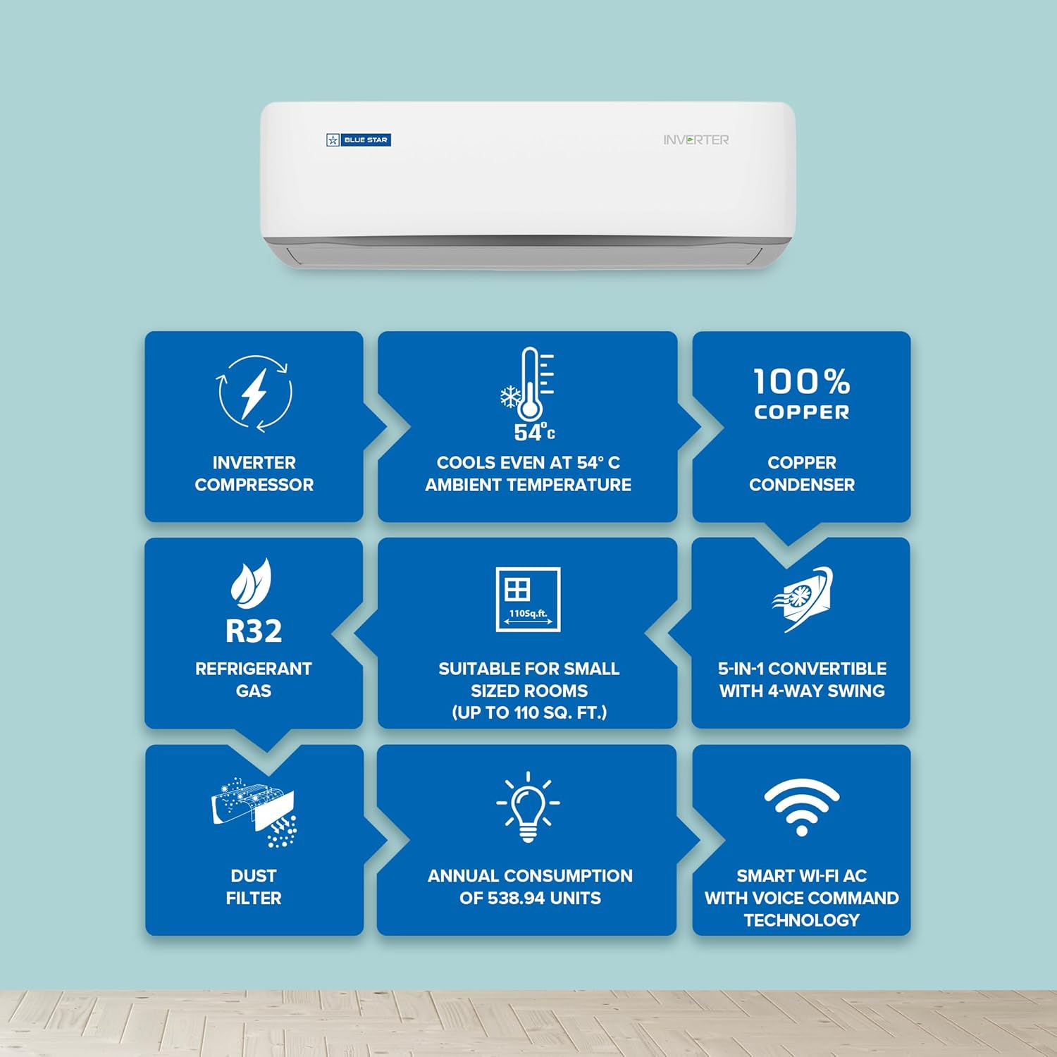 Smart AC with Smart App: Your Blue Star Smart AC comes with an in-built Wifi module which ensures that you can use your AC from anytime, anywhere, truly the smart way.