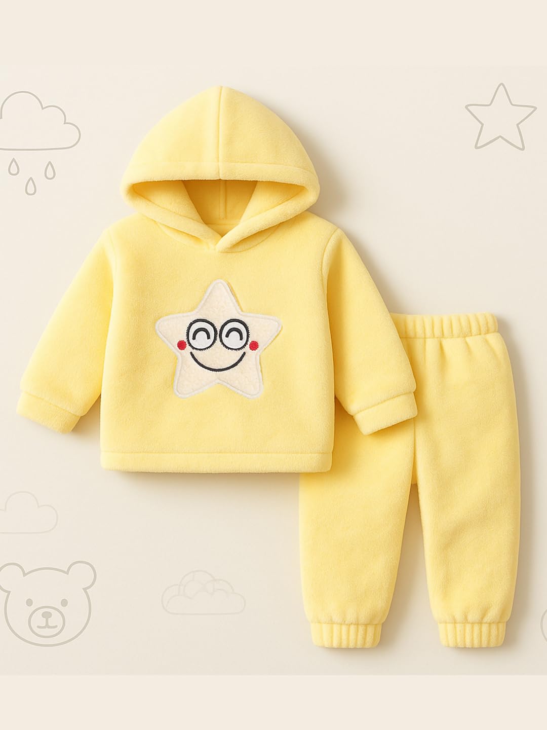 Bold N Elegant brings kid’s affordable fashion smiling star graphics full sleeve warm fur fleece winter hoodie sweatshirt and Jogger Pajama set for infant toddler baby boy and girl that will cover your kids and keep them warm and cozy for every type of event or outdoor trip. The best-looking in terms of style and quality. Soft, amazingly snuggly, furry and warm, made from premium quality fibres, featured with hood. Basically, this is a proper all-round autumn winter clothing set, a big hit this season!