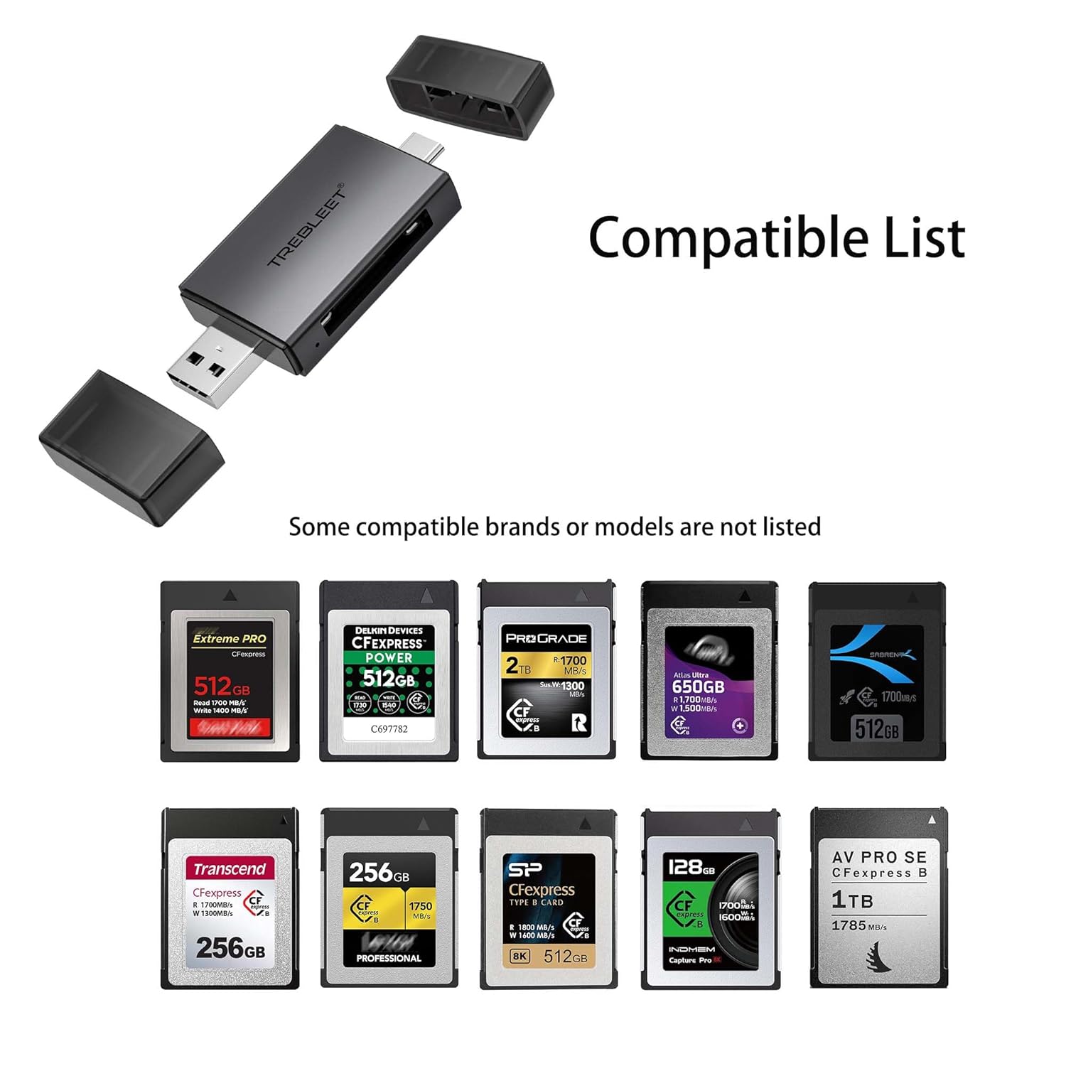 [USB 3.2 10Gb + USB-C & USB-A] The TREBLEET CFexpress Type-B Card Reader features the USB 3.2 10Gbps high-speed performance of up to 900MB/s with CFexpress Type-B allowing you to transfer files between your PC and USB-C devices anywhere, anytime.Backward compatible with USB 3.1 Gen 1 and USB 3.0 up to 5Gbps.