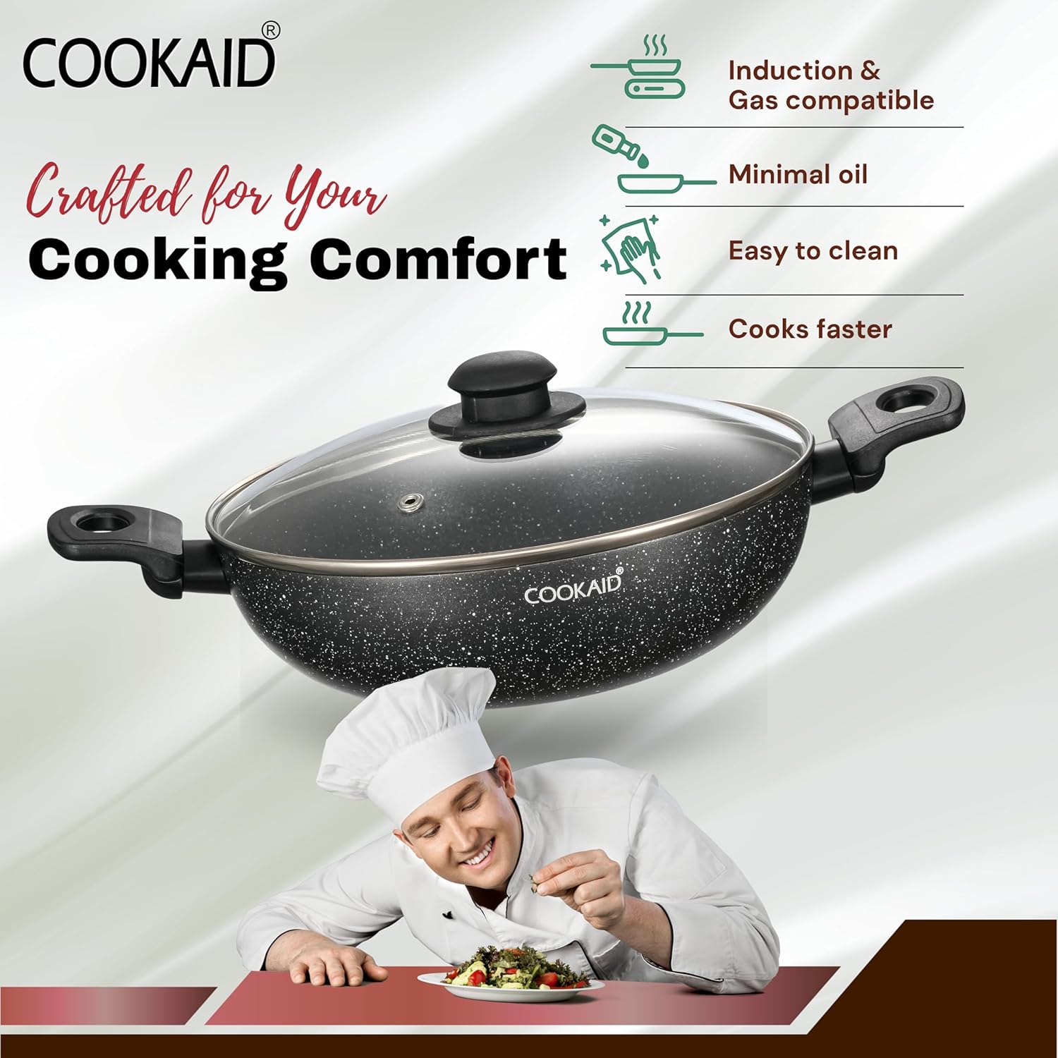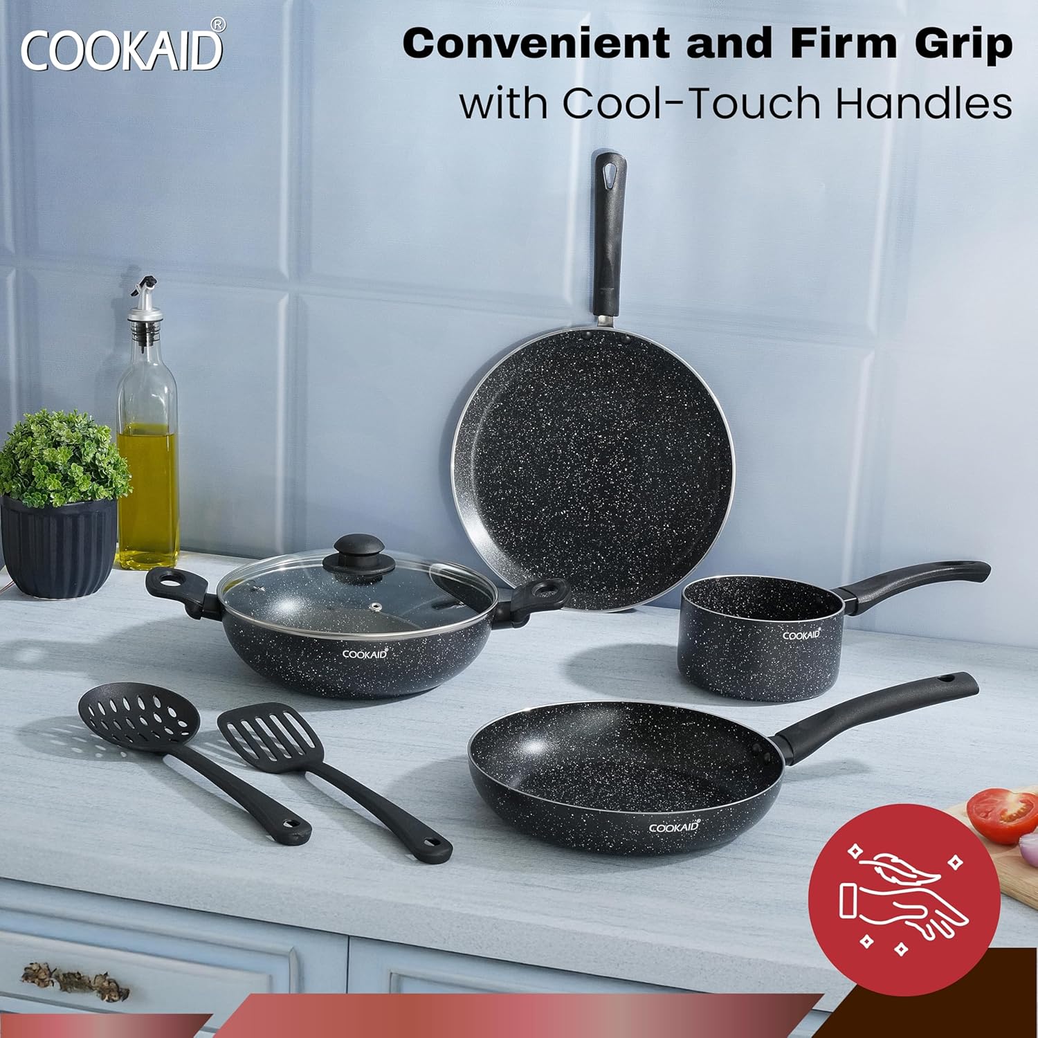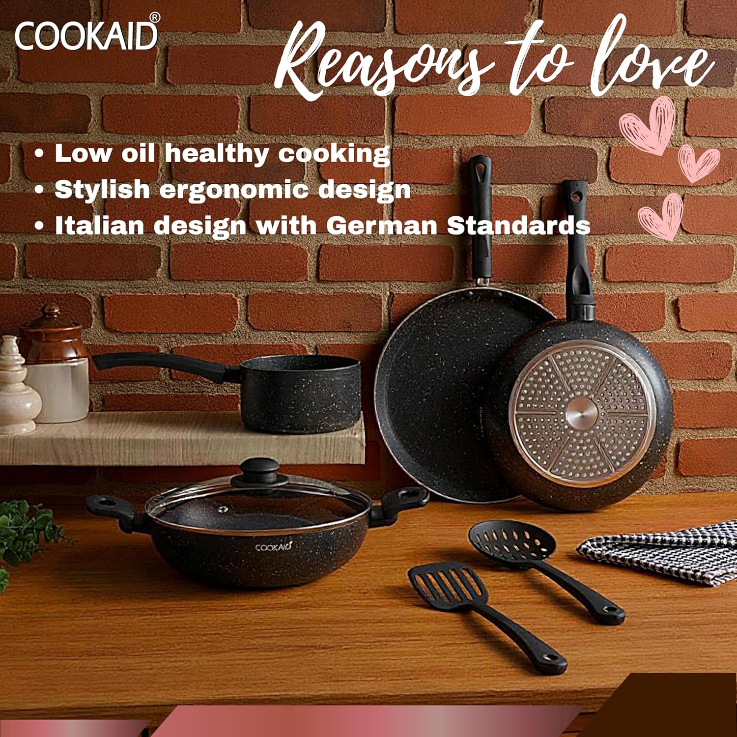 Cookaid brings to you an everyday essential Velora Series 7 Pcs Cookware Set. The beautiful Black coloured coating can be used for multiple cooking needs. Get stellar performance every time you cook with Velora Series 7 Pcs Cookware Set.