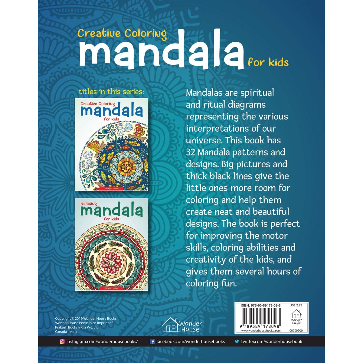 Creative coloring mandala for little artists to unleash their creativity and create amazing masterpieces. The book has 32 simple and complex mandalas with thick lines and large spaces to make colouring easy for kids. Shading, scribbling, and colouring in intricate designs will enhance children’s color awareness, concentration, and guarantees hours of fun. Colouring these patterns will also have a soothing effect on the children.