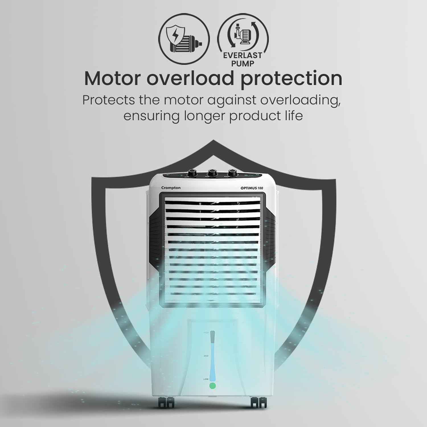 The air cooler is engineered with a motor overload protector that ensures durability & longer motor life while preventing it from overheating.