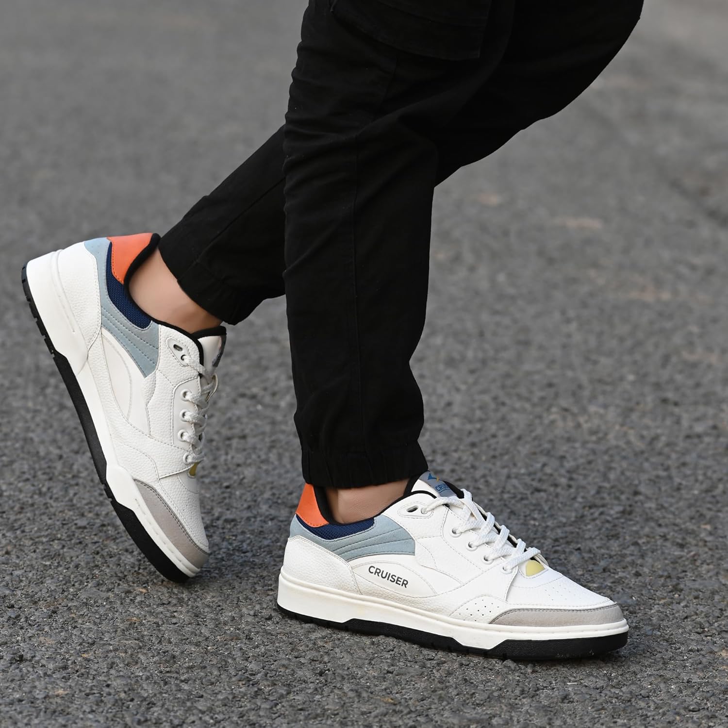 Cruiser White Sneaker for Men | Lightweight & Comfortable | Stylish Lace-Up Casual Footwear with Cushioned Insole |Classic Canvas Sneakers for Effortless Style | Perfect for Versatile Outfits (2632)