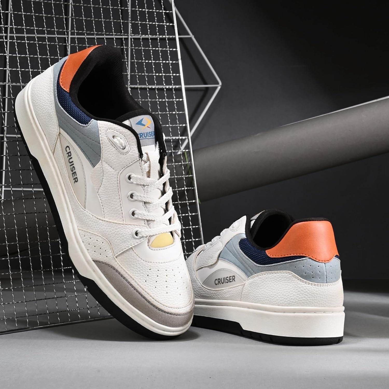 Cruiser White Sneaker for Men | Lightweight & Comfortable | Stylish Lace-Up Casual Footwear with Cushioned Insole |Classic Canvas Sneakers for Effortless Style | Perfect for Versatile Outfits (2632)