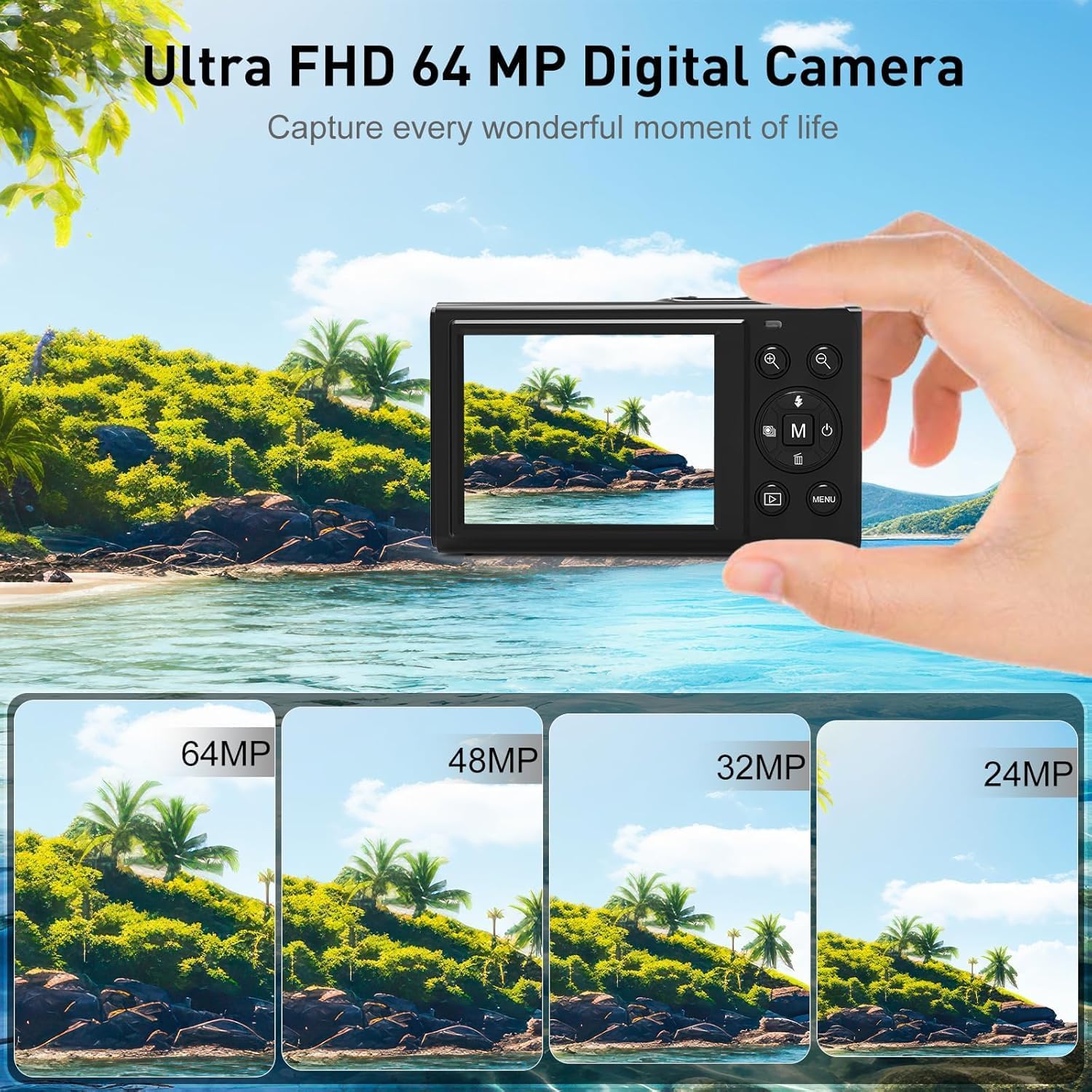Capture life’s precious moments with our 4K ultra HD digital camera, featuring 5X optical zoom, WiFi connectivity, and 64MP auto focus. Perfect for beginners, amateurs, and teenagers, this camera delivers high-quality images and videos.
