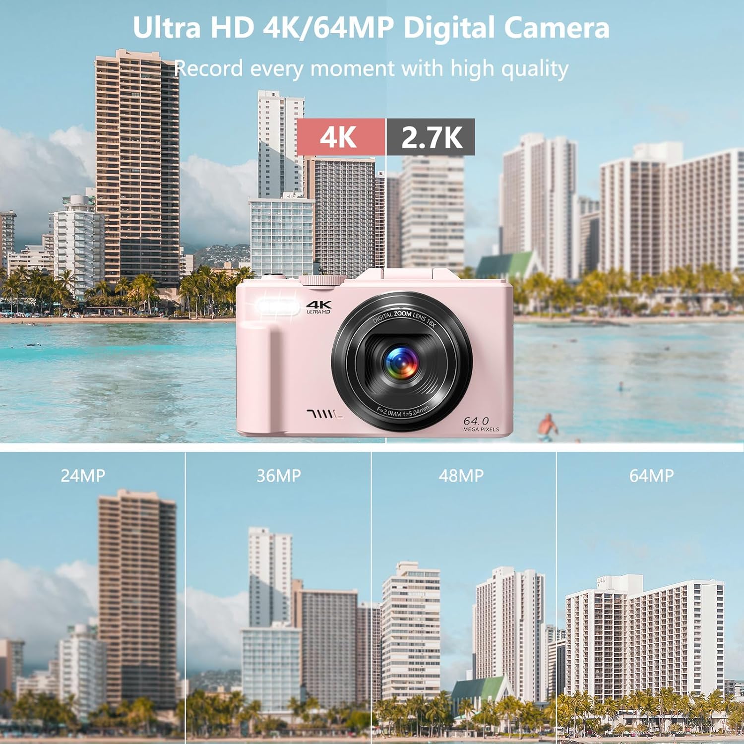 【Autofocus 64MP & UHD 4K Digital Camera】The digital camera can make YouTube 4K videos and take 64 MP UHD pictures. High quality images and high pixel video sensor can capture every memorable moment clearly.4k vlogging camera has three focus modes: auto focus, manual focus and fixed focus, you can set the focus mode according to your needs. It is a perfect photography cameras for beginners