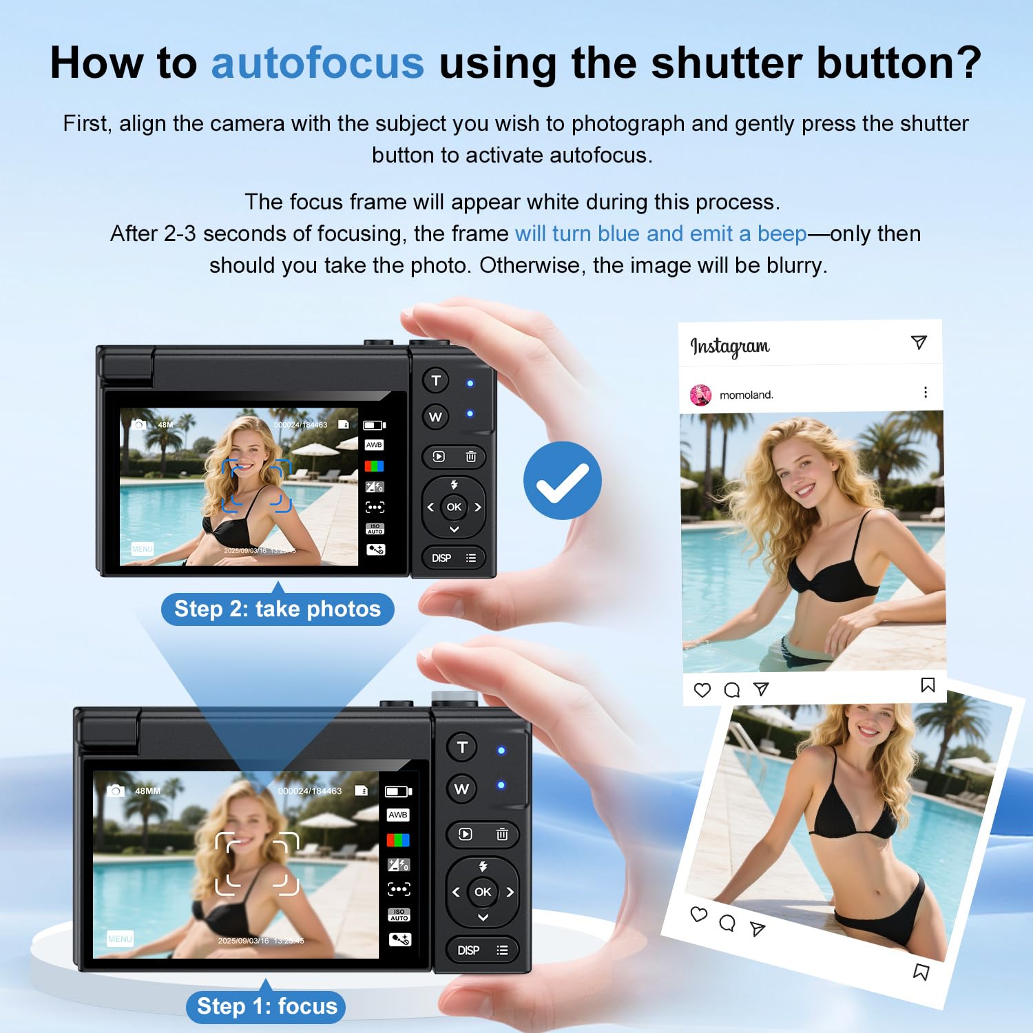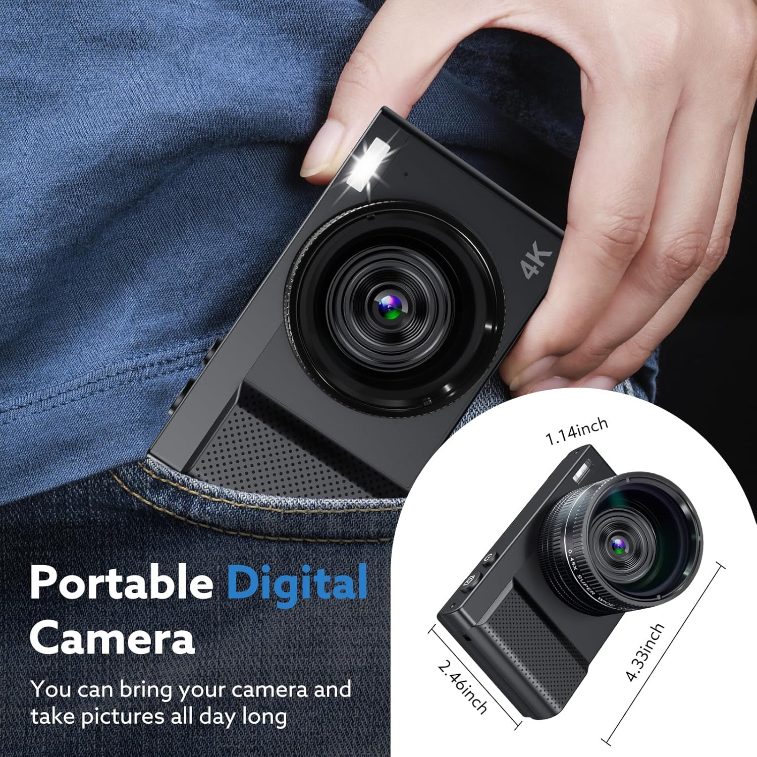 【180° Flip Screen and Poratble】Our 4k camera for photography offers a 3.0-inch IPS 180° flip screen, ideal for selfie enthusiasts and vlogging creation. Designed for travel and everyday use, this compact travel camera for pictures is built to last. Its small size and durable construction make it a reliable companion for capturing memories on the go.
