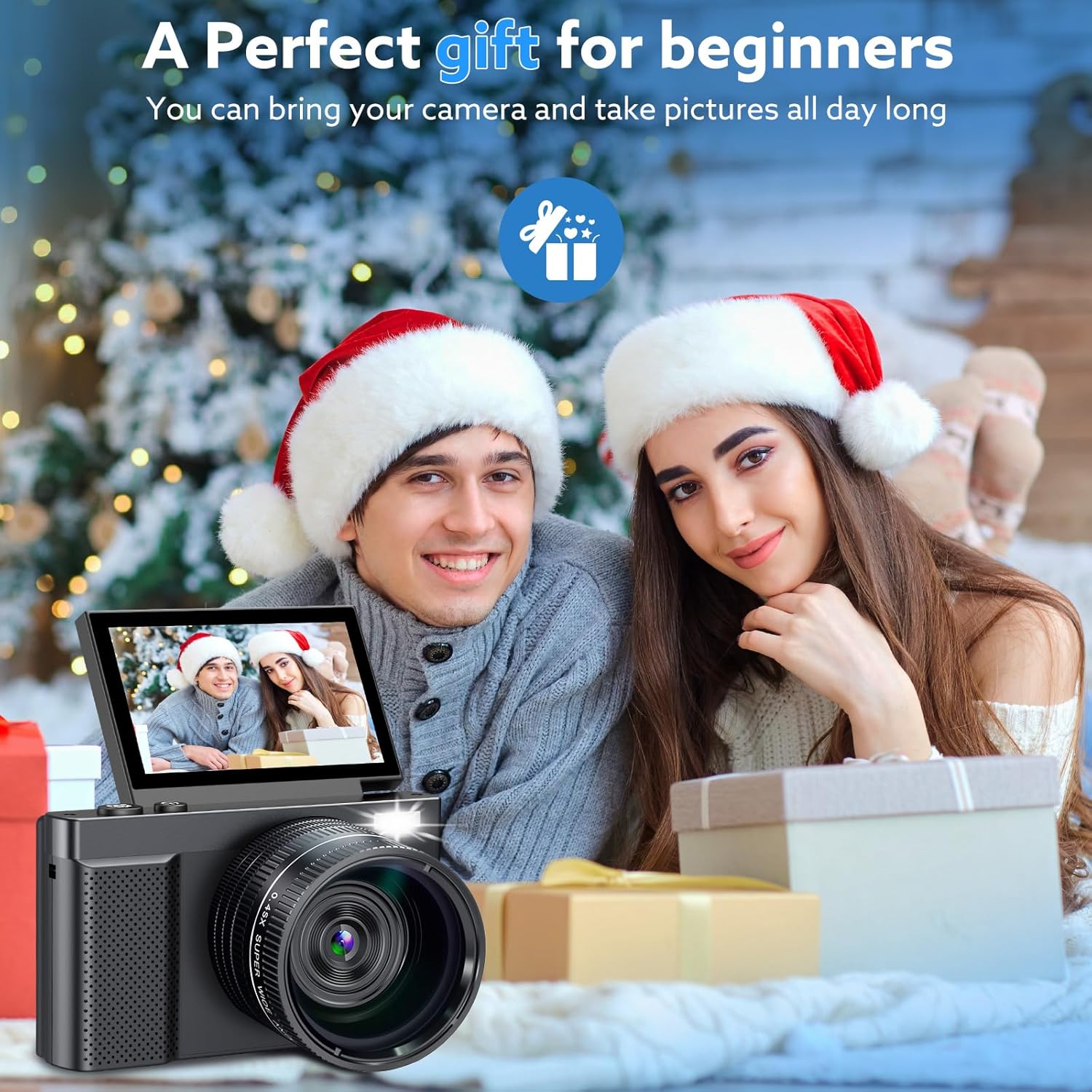 【Advanced Features & Bright Flash】The digital camera elevates your photography with anti-shake, time-lapse, slow-motion, face detection, continuous shooting, and vintage filters. Customize your shots with ISO, exposure compensation, timestamp, self-timer, and delayed shooting. Camera with built-in flash enhances low-light scenes, reducing noise and improving clarity in nighttime portraits, and dim environments, ensuring every shot remains bright and detailed.