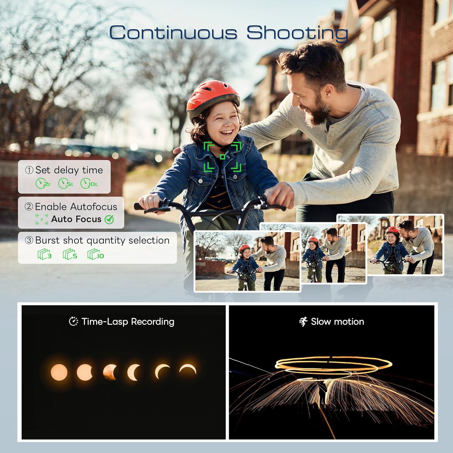 【Vlogging Camera with 5 Creative Modes】Fast, reliable autofocus ensures your subject stays sharp, even in motion, so you never miss a critical moment. Enhance your videos with five built-in creative modes, including Time-Lapse, Slow-Motion, and Loop Recording. These features allow for extended capture and creative effects, simplifying your workflow by minimizing post-production editing.