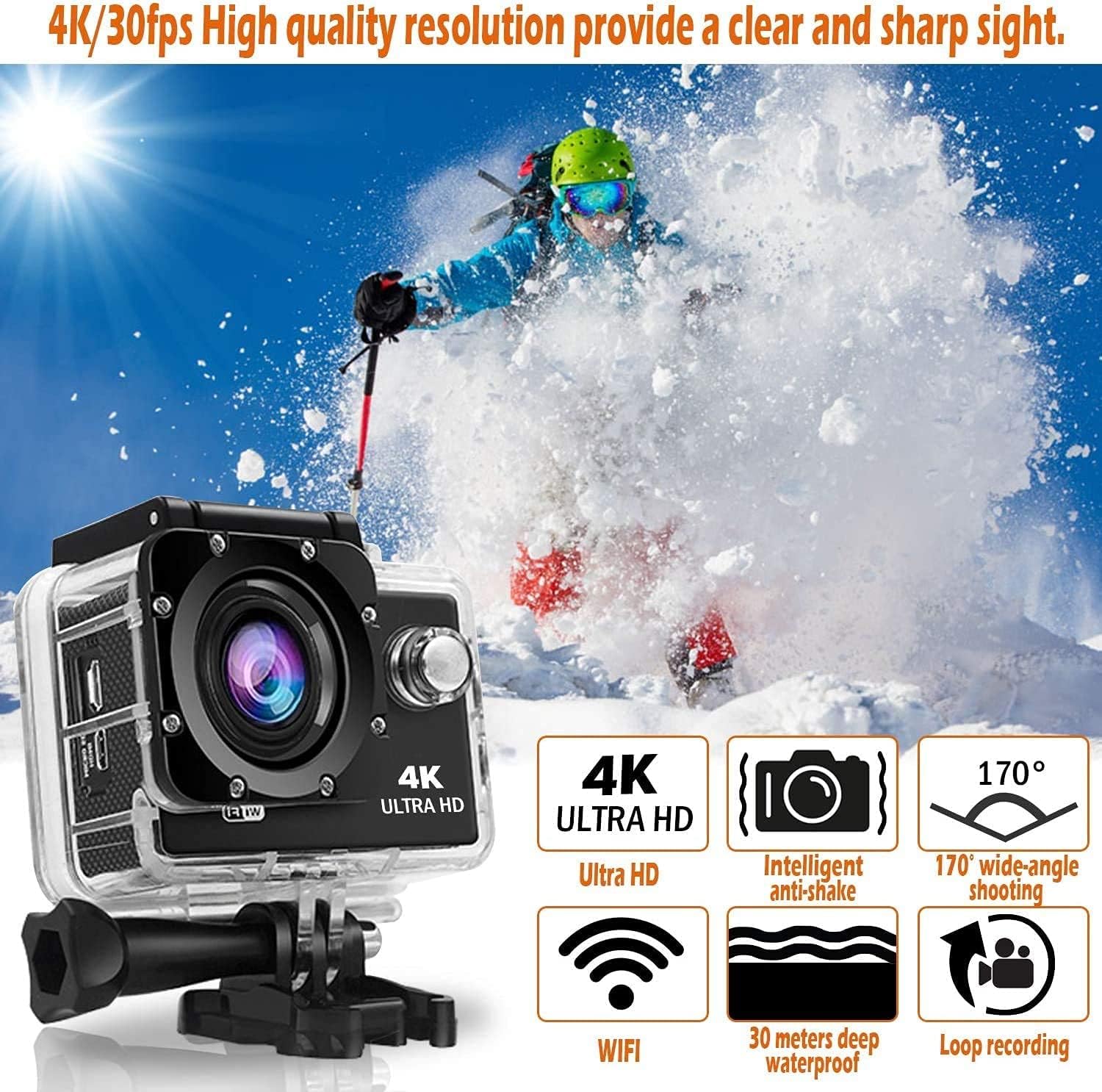 Versatile & Compact: 4k HD action camera features multiple functions including driving mode, image rotation, time-lapse, burst photo, loop recording, slow motion, dramashot, white balance, etc. Bringing this camera to more applicable conditions beyond your expectation.