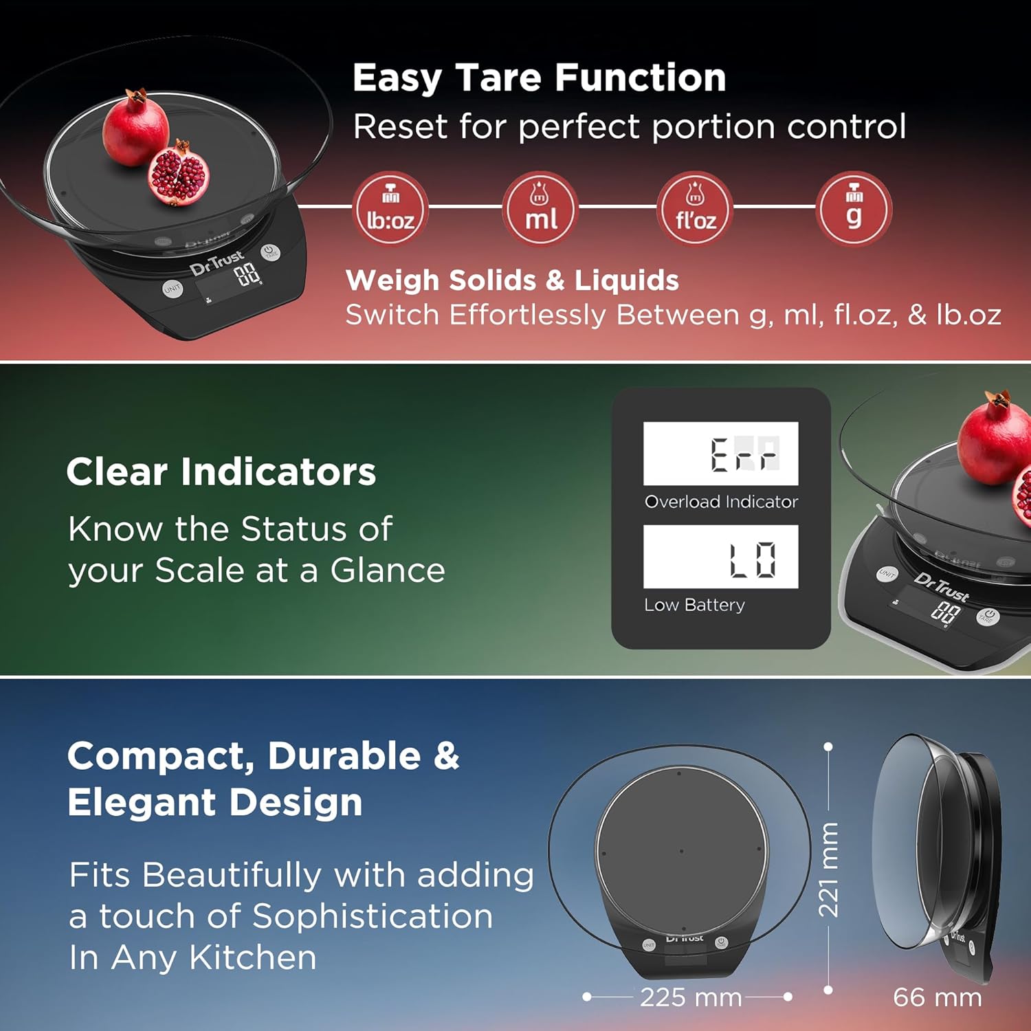 SAFE AND CONVENIENT BPA-FREE BOWL: The included BPA-free bowl is not only safe for handling food but also adds convenience by allowing you to weigh, mix, and transfer ingredients effortlessly. Its sturdy design prevents spills, keeping your kitchen workspace neat and organized.