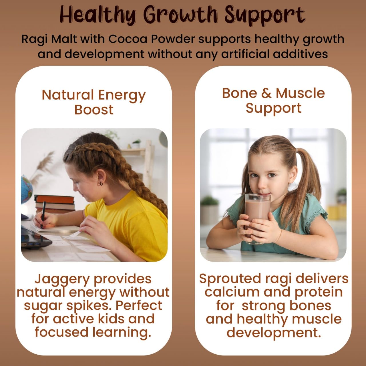 100% NATURAL INGREDIENTS: Made with pure ragi malt and natural cocoa powder, free from artificial colours, added flavours, and preservatives for a wholesome drink experience