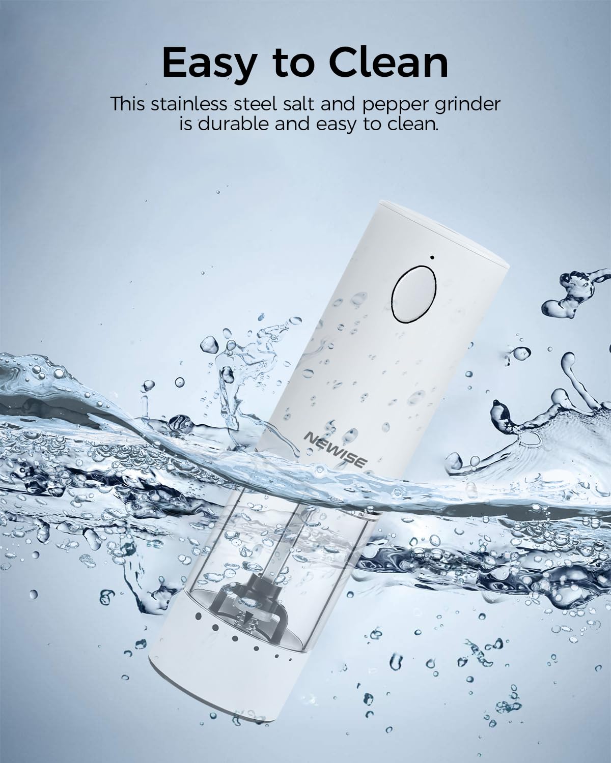 【Stainless Steel】Elevate your dining experience with our stainless steel electric salt and pepper grinder set. Made with high-quality stainless steel, this set is not only durable but also adds a touch of sophistication to your kitchen and dining table