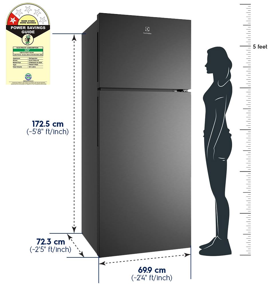 Electrolux 460L Frost Free Double Door Refrigerator with AI AutoSense, GreenZone AHC Technology, Inverter Compressor, Matte Charcoal Black Steel, UltimateTaste 700, ETM4302C-B