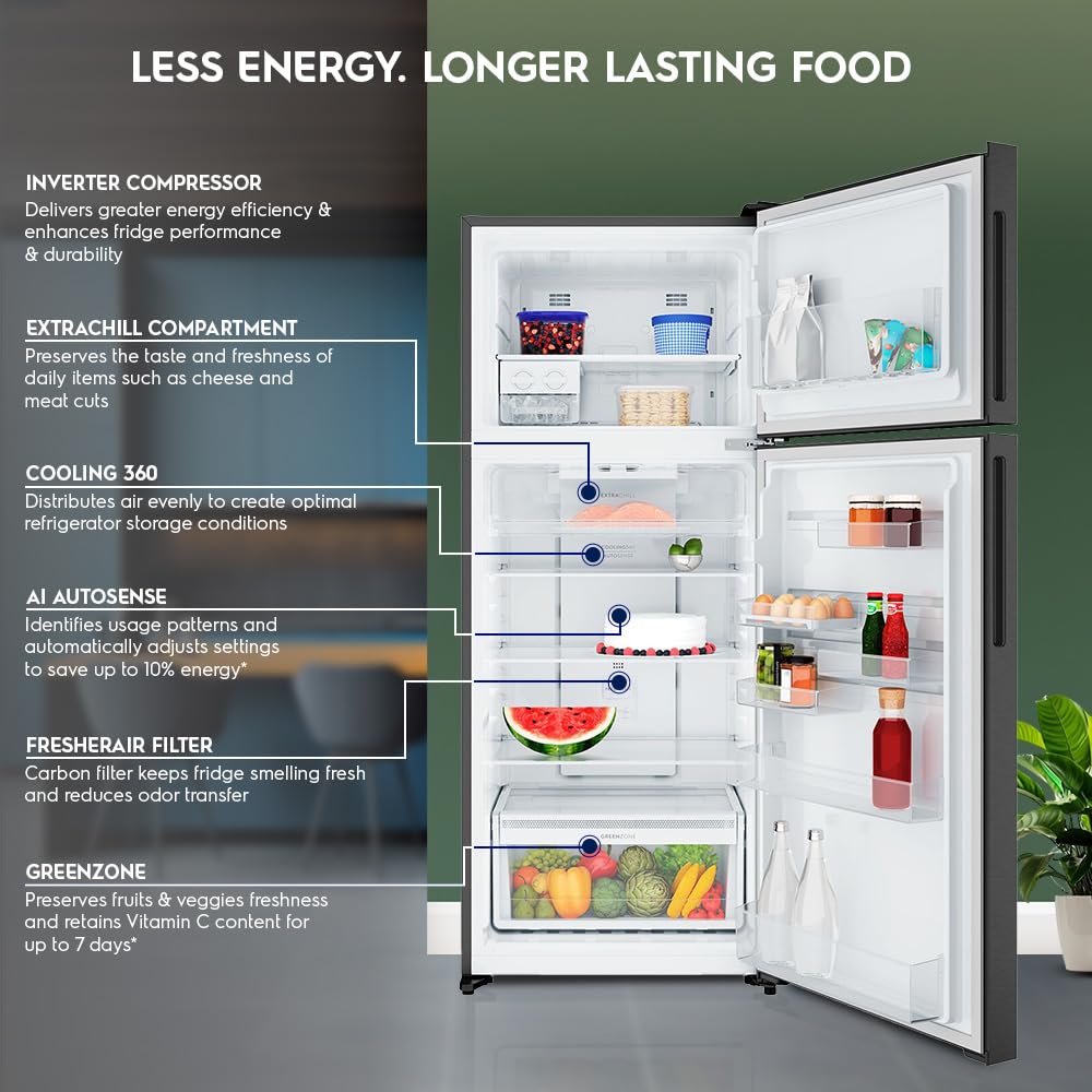 Energy-smart Technology: This technology delivers greater energy efficiency and quieter noise levels*, while enhancing fridge performance, durability, and longevity. The Inverter Compressor automatically adjusts the running speed in response to cooling demand creating a constant, optimal food storage.